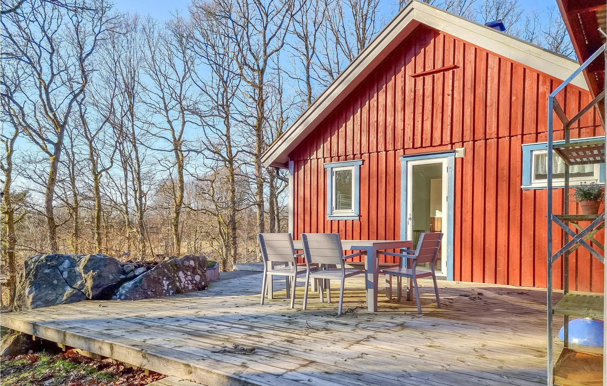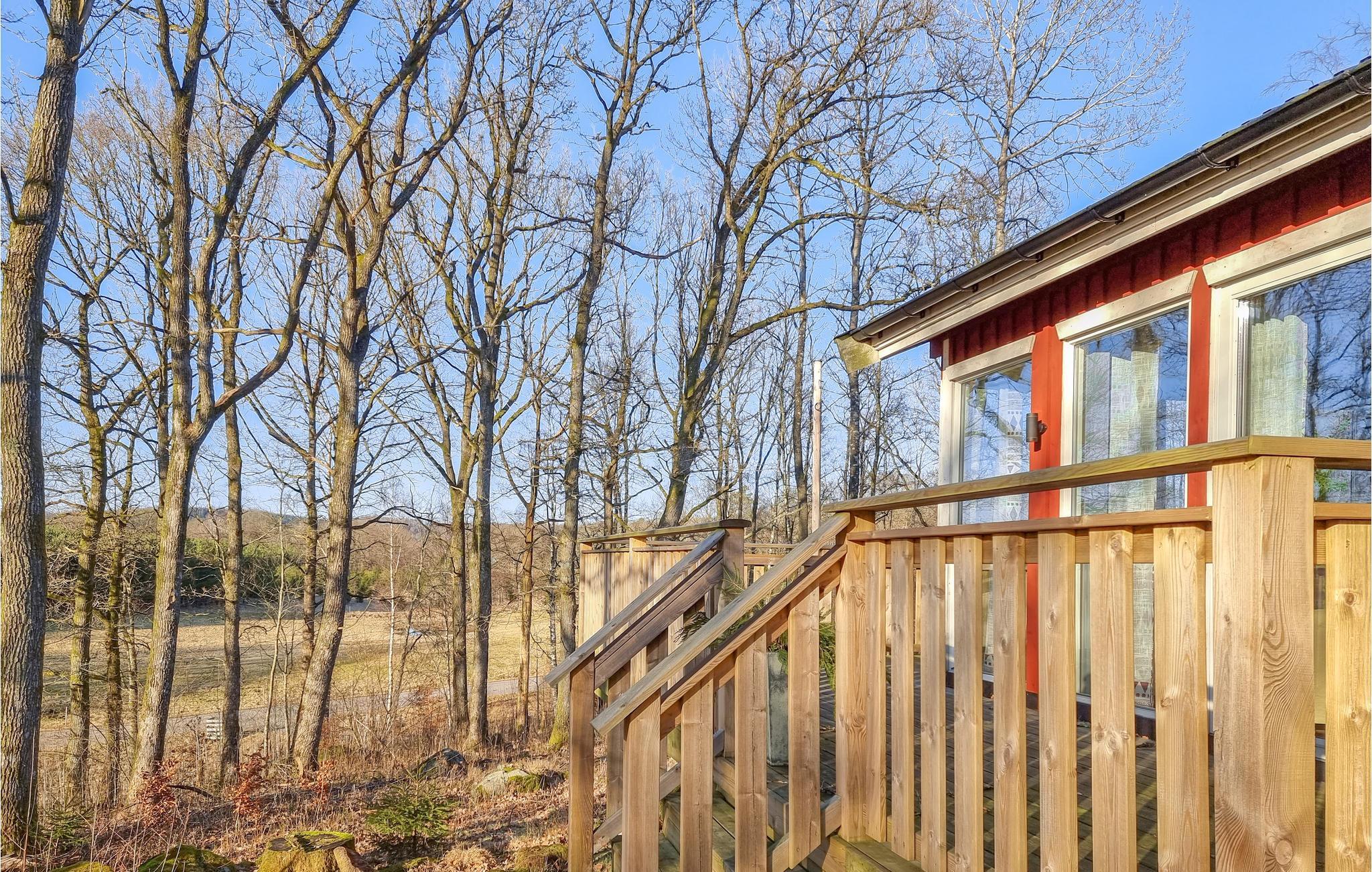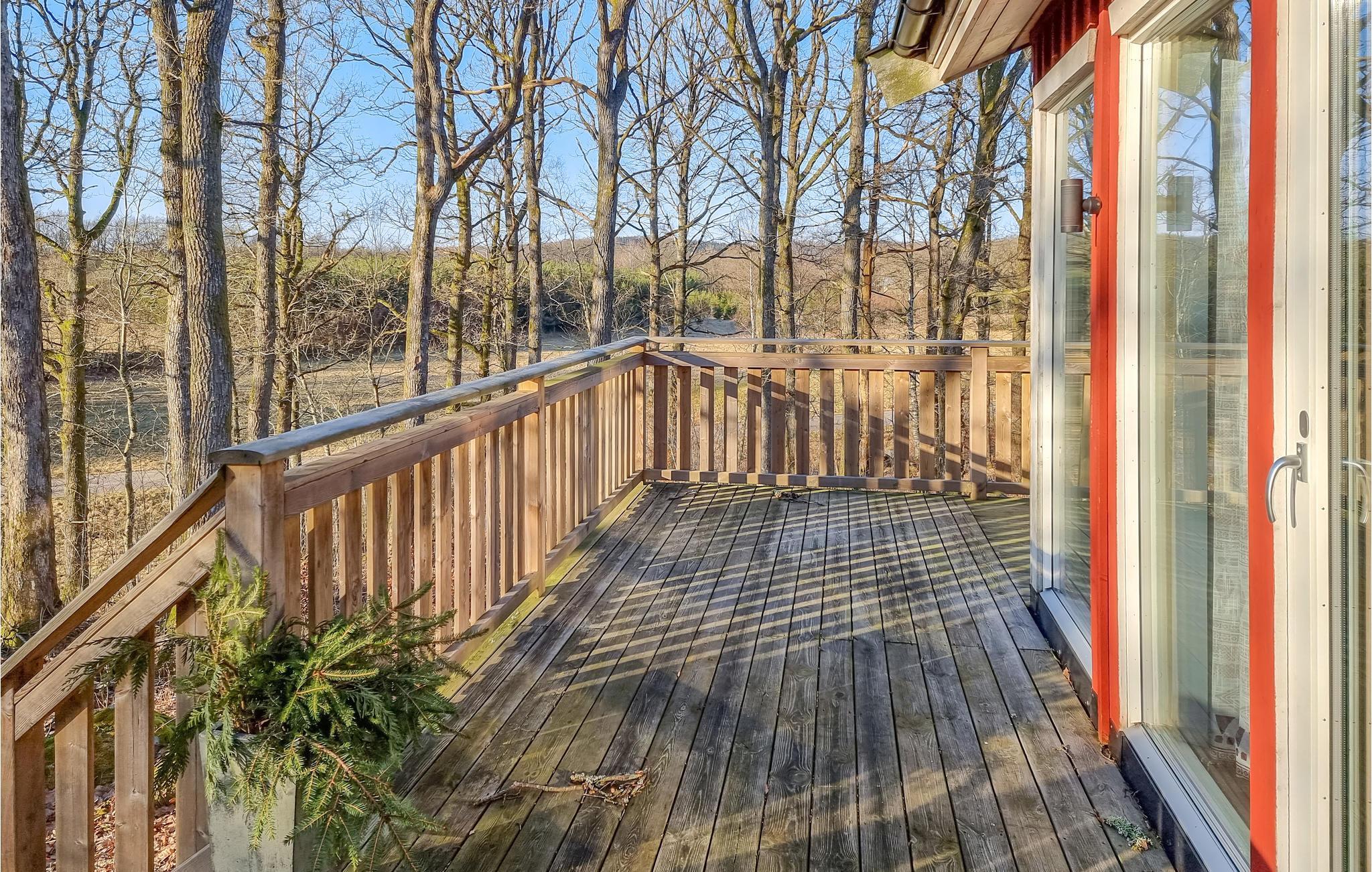 Herzlich Willkommen in diesem Haus mit der typisch roten Farbe und einladender Terrasse. Aufgrund der vielen großen Fenster ist die Unterkunft sehr hell und die Lage in der Natur lässt sich perfekt genießen. Auf dem Rundum-Balkon finden Sie fast zu jeder Tageszeit einen sonnigen Platz, auf dem Sie die frische Waldluft genießen können. Im Inneren sorgt der Kamin sorgt für wohlige Wärme. Das geräumige Wohnzimmer eignet sich perfekt für einen Spiele- oder Filmabend mit der ganzen Familie. Zum Essen können Sie bequem an der praktisch eingerichteten Essecke platznehmen und sich auch hier am Blick nach Außen ins Grün erfreuen.