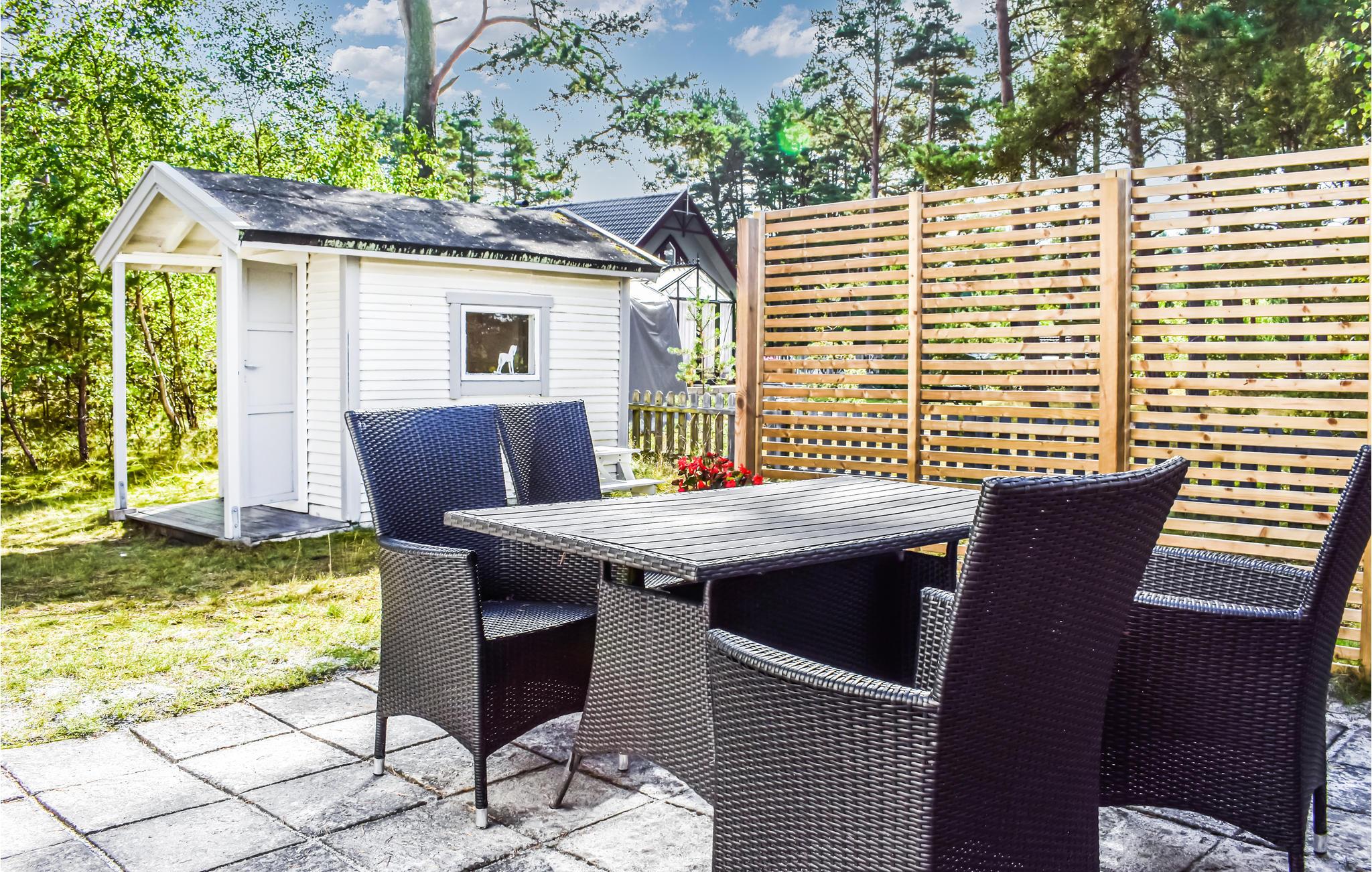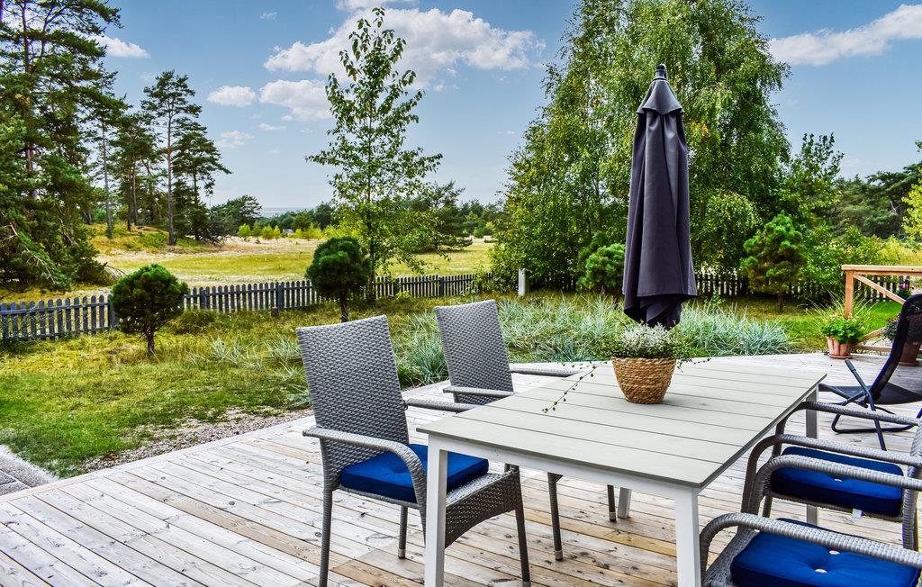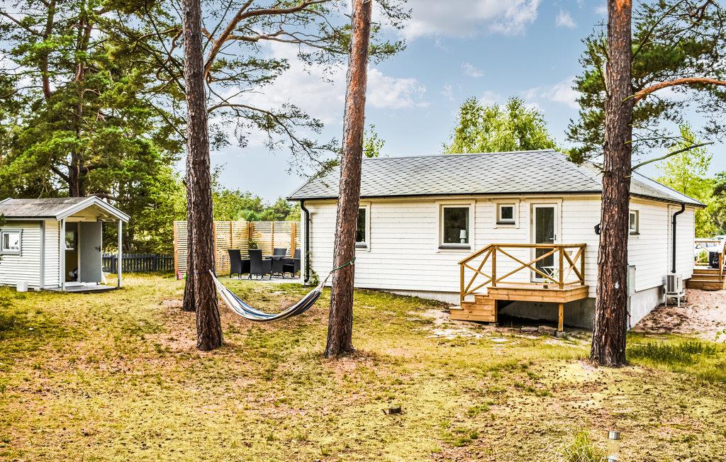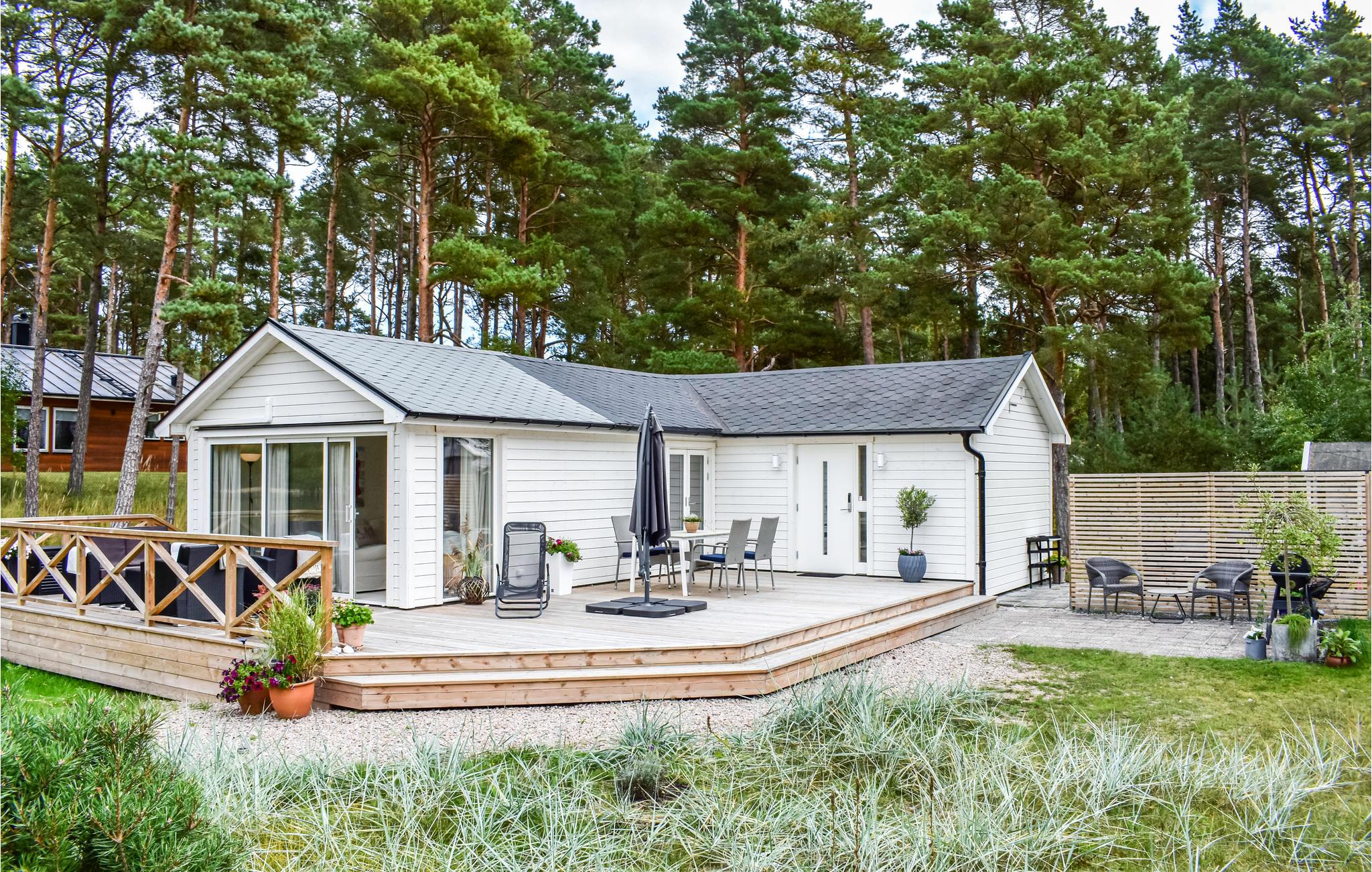 Treten Sie vom Wohnzimmer hinaus auf die offene, einladende Holzterrasse. Ideal für Sonnenbäder oder gesellige Grillabende. Sehen Sie Ihren Kindern zu, wie Sie im Garten spielen und das Spielhaus erkunden. Das Haus steht auf einem eingezäunten Eckgrundstück und nur wenige hundert Meter vom Sandstrand in Nyehusen entfernt. Besuchen Sie ebenso das nahe Yngsjö an der Ostküste von Schonen und erleben das Naturreservat Friseboda.