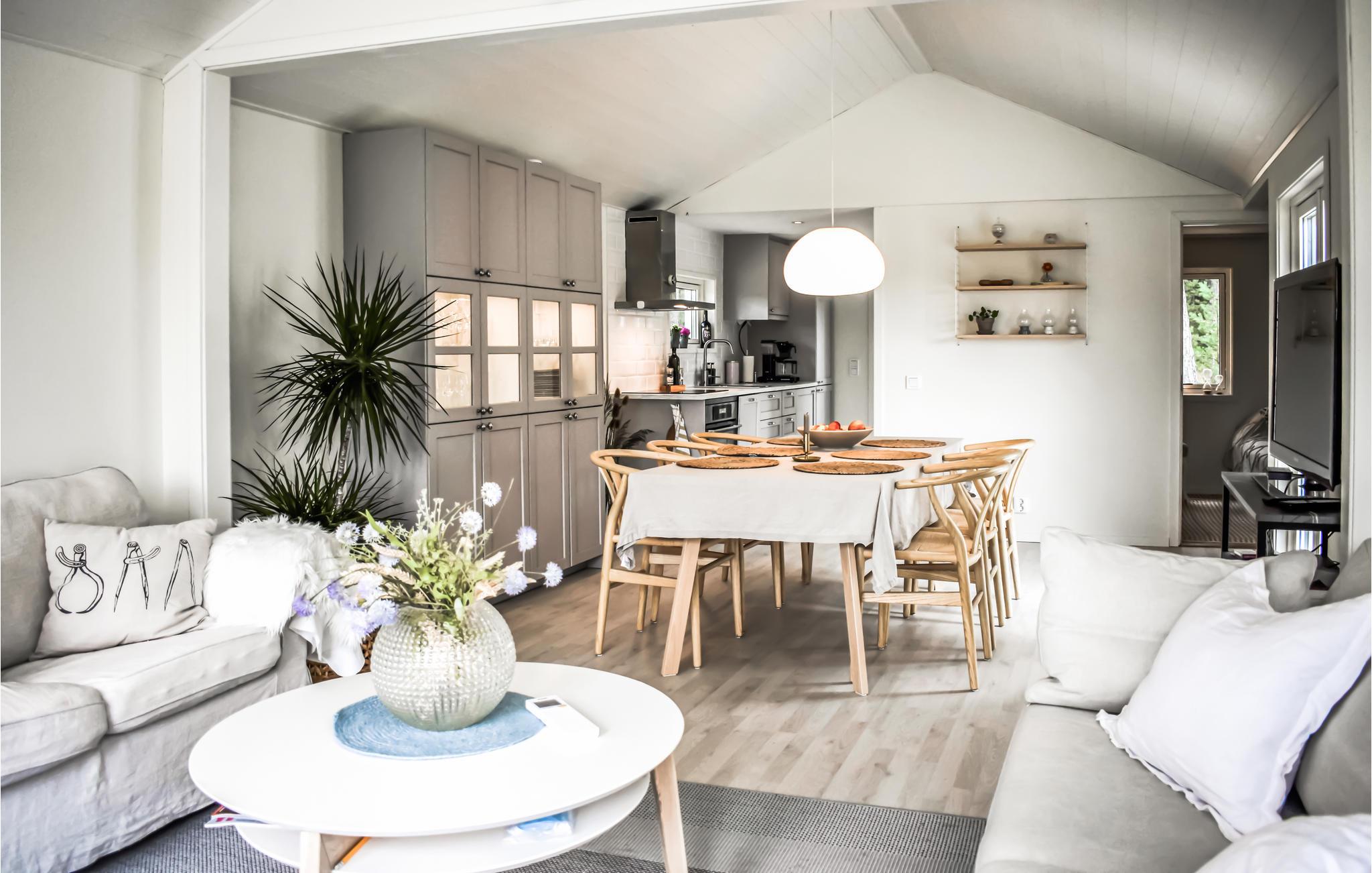 Willkommen in diesem schönen Haus, das von einer tollen Architektur bestimmt wird. Hier empfängt Sie ein helles, einladendes Interieur, gemütliche Schlafzimmer und ein Wohnzimmer mit offener Küche. Zum Haus gehört zudem ein großer Annex, wo ein Paar Nachtruhe finden. Legen Sie Ihre Beine auf den Sofas hoch oder zaubern in der gut ausgestatteten Küche leckere Mahlzeiten.