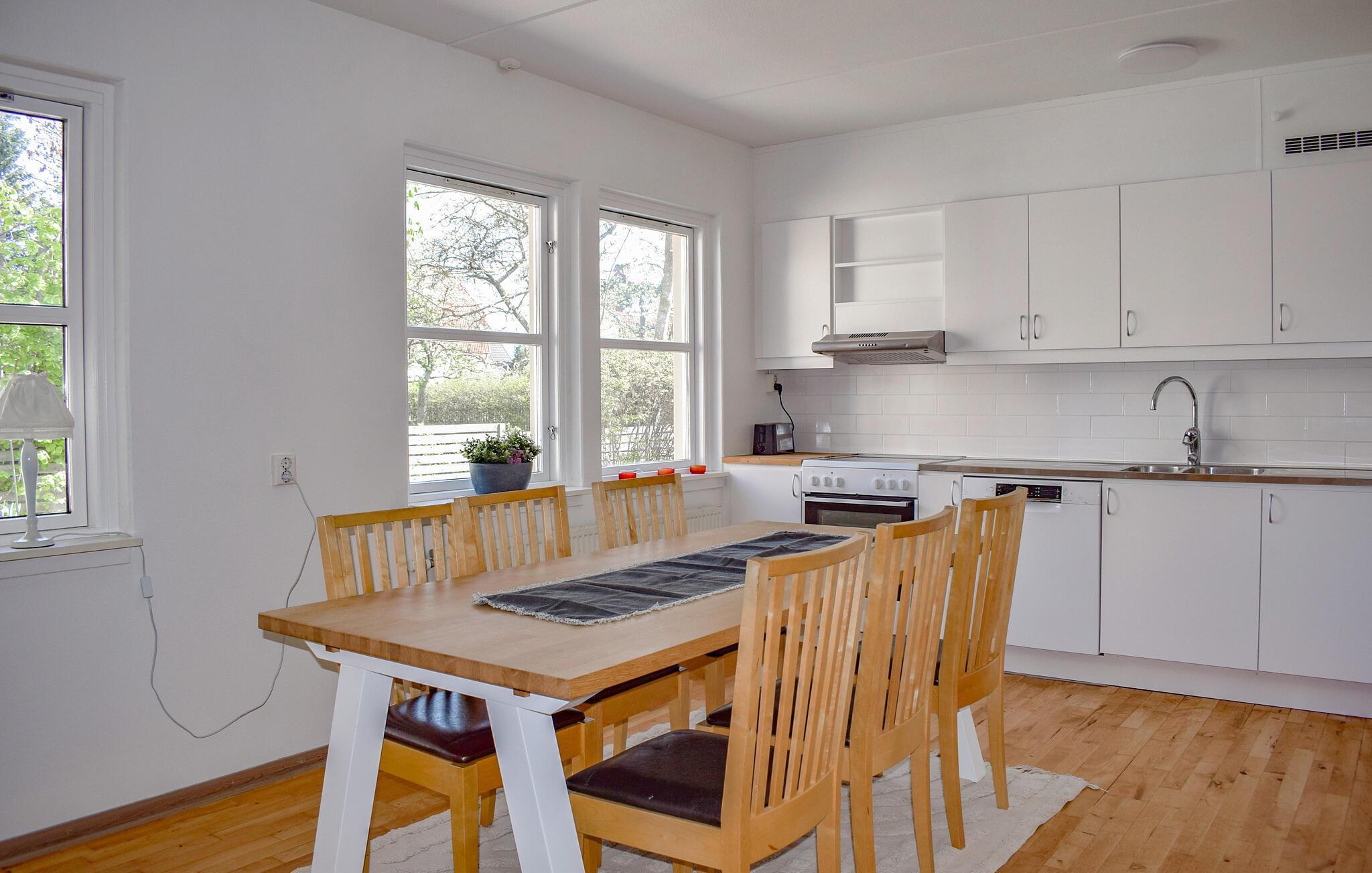 In schöner Lage empfängt Sie die Wohnung nur einen kurzen Spaziergang vom Strand entfernt. Dezente Farben und eine Einrichtung, die sich auf das Wesentliche konzentriert, ermöglichen es Ihnen, in ansprechendem Rahmen zu entspannen. Genießen Sie beim Essen den schönen Blick ins Freie und machen Sie es sich abends auf dem Sofa bequem, auch hier können Sie den Blick über die Landschaft schweifen lassen.