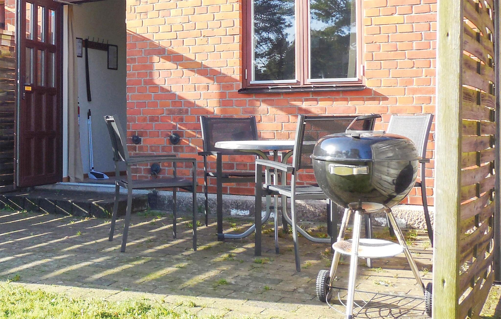 Die Schlafgelegenheiten verteilen sich auf ein Schlafzimmer und einen Schlafboden, abgeteilt durch einen Vorhang. Die Küche ist zum Wohnzimmer offen. Auf der sichtgeschützten Terrasse können Sie bequem sitzen und grillen. Der Rasen wird mit mehreren Wohnungen der Anlage Stallgården gemeinsam benutzt, der Betreiber der Anlage ist der Verein KFUM.