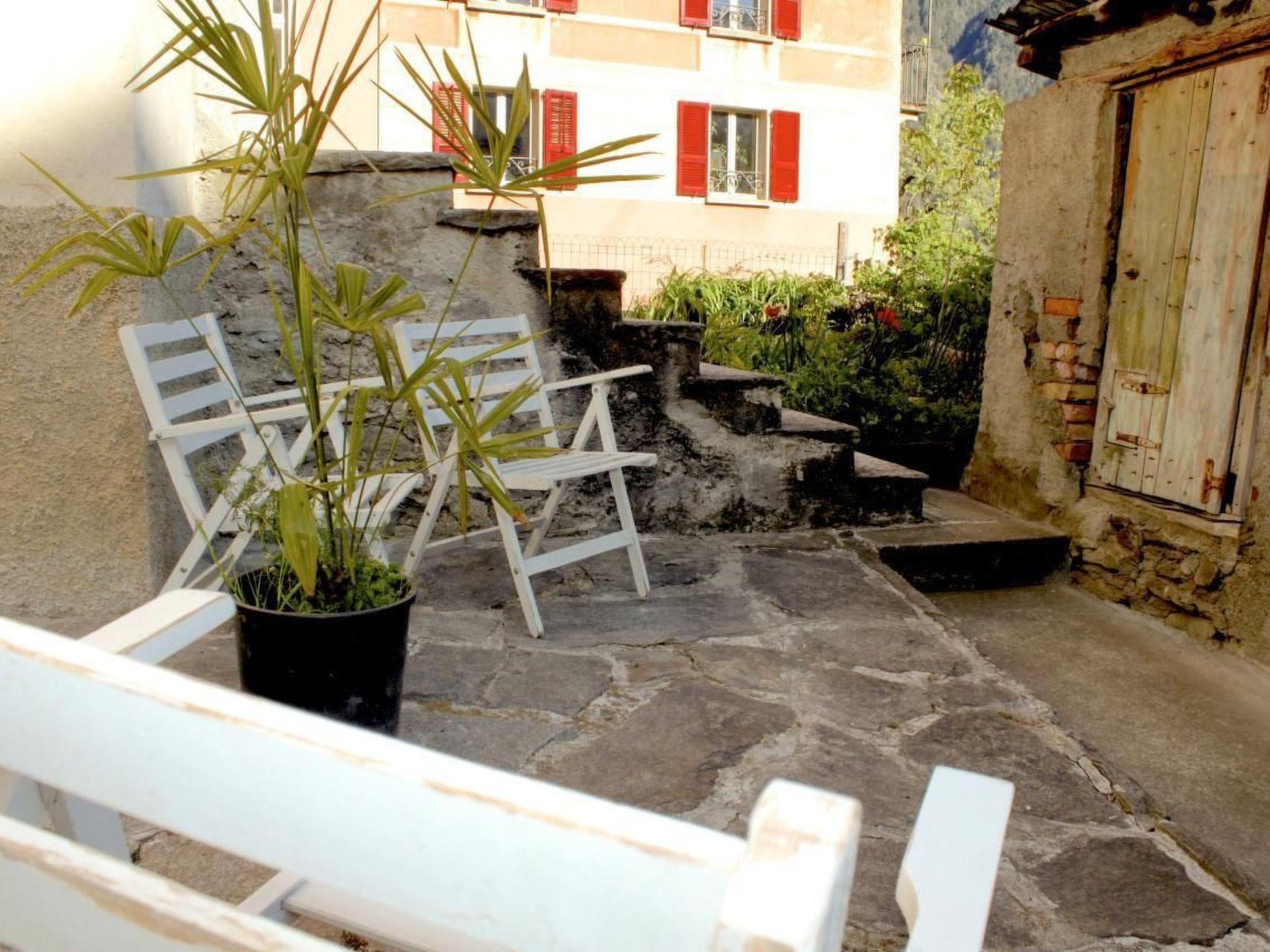 The outdoor area is in perfect harmony with nature. Surrounded by a mantle of greenery, three balconies, including a charming little balcony above the main door, provide breathtaking views across the valley to the majestic peaks of the Lepontine Alps - the perfect backdrop for a peaceful holiday.