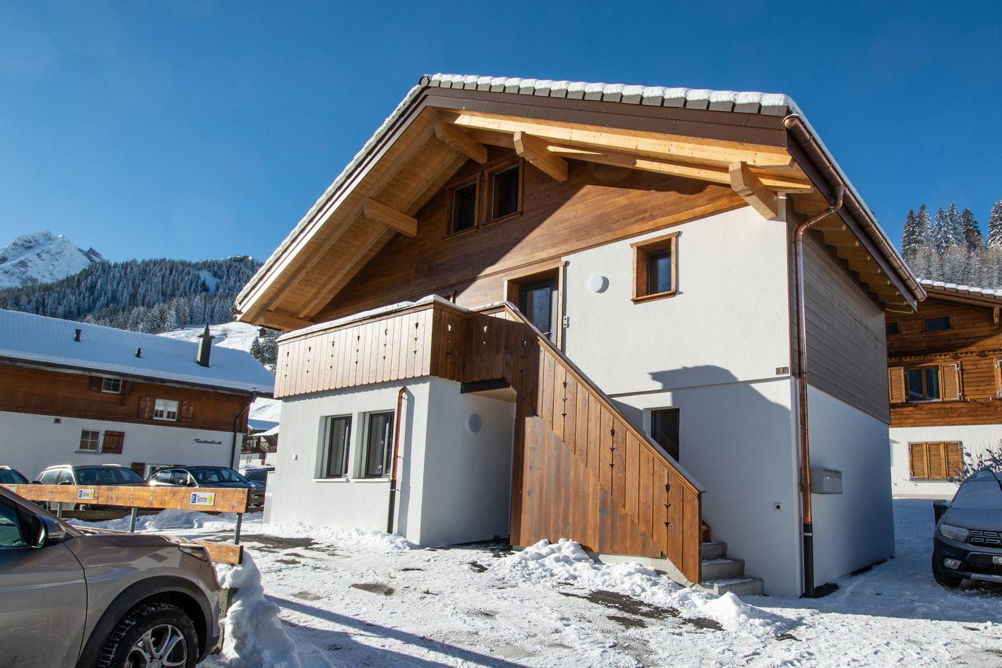 Neu renovierte Ferienwohnung für 6 Personen, direkt an der Skipiste Chuenisbergli. 2 Schlafzimmer und ein Bettsofa im Wohnzimmer bieten 6 Personen Platz. Sitzecke, TV und Internet. Vollständig ausgestattete Küche mit Esstisch für 6 Personen. Geräumiges Bad mit Dusche, WC und Waschbecken. Abstellraum für Ski und Sportgeräte. Gartensitzplatz vor dem Haus. Die Haltestelle des Orts-/Skibus ist nur 50 Meter entfernt. Skilift und Skipiste sind gleich neben dem Haus. In 300 Meter befindet sich eine Einkaufsmöglichkeit. Eine gebührenpflichtige Parkmöglichkeit ist 50 Meter entfernt, Gebührenpflichtig
