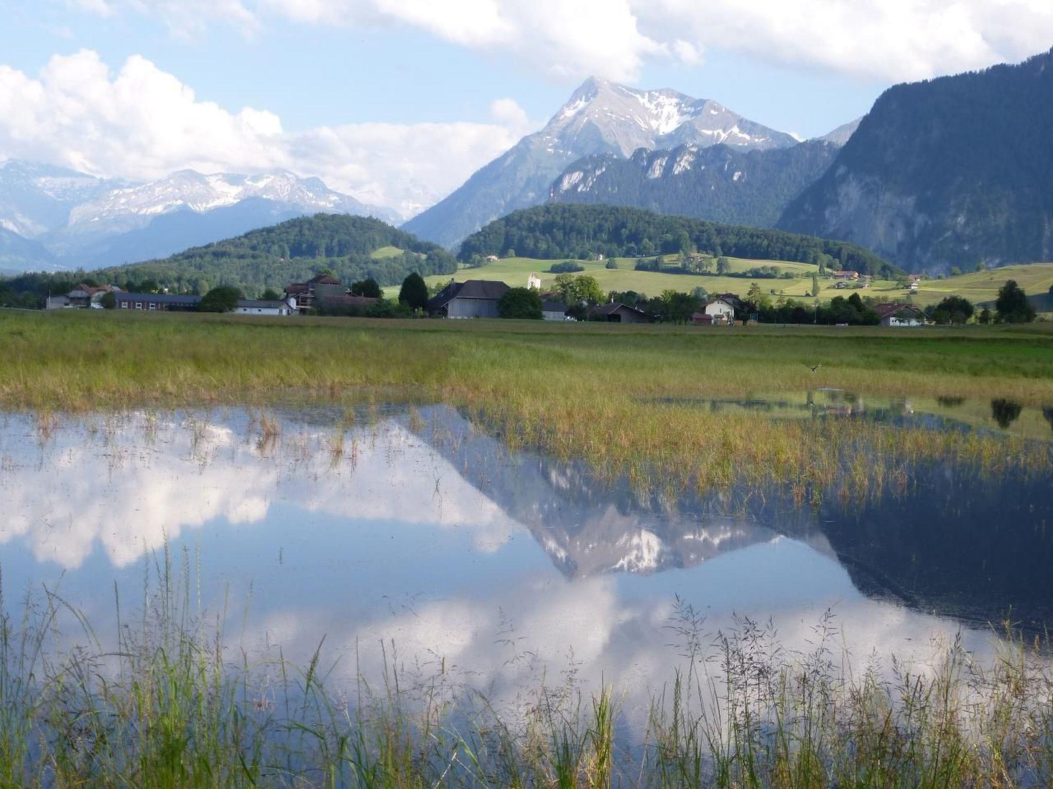 Surrounded by breathtaking nature, the surrounding area invites you to enjoy relaxing hikes and bike tours through forests, hills and meadows. The picturesque Lake Amsoldingen and Lake Übeschi are perfect places to linger. Swimming in Lake Thun, a boat trip on Lake Thun, a car tour around Lake Thun with views of Oberhofen Castle, the mountain range, etc. make for an unforgettable day.
