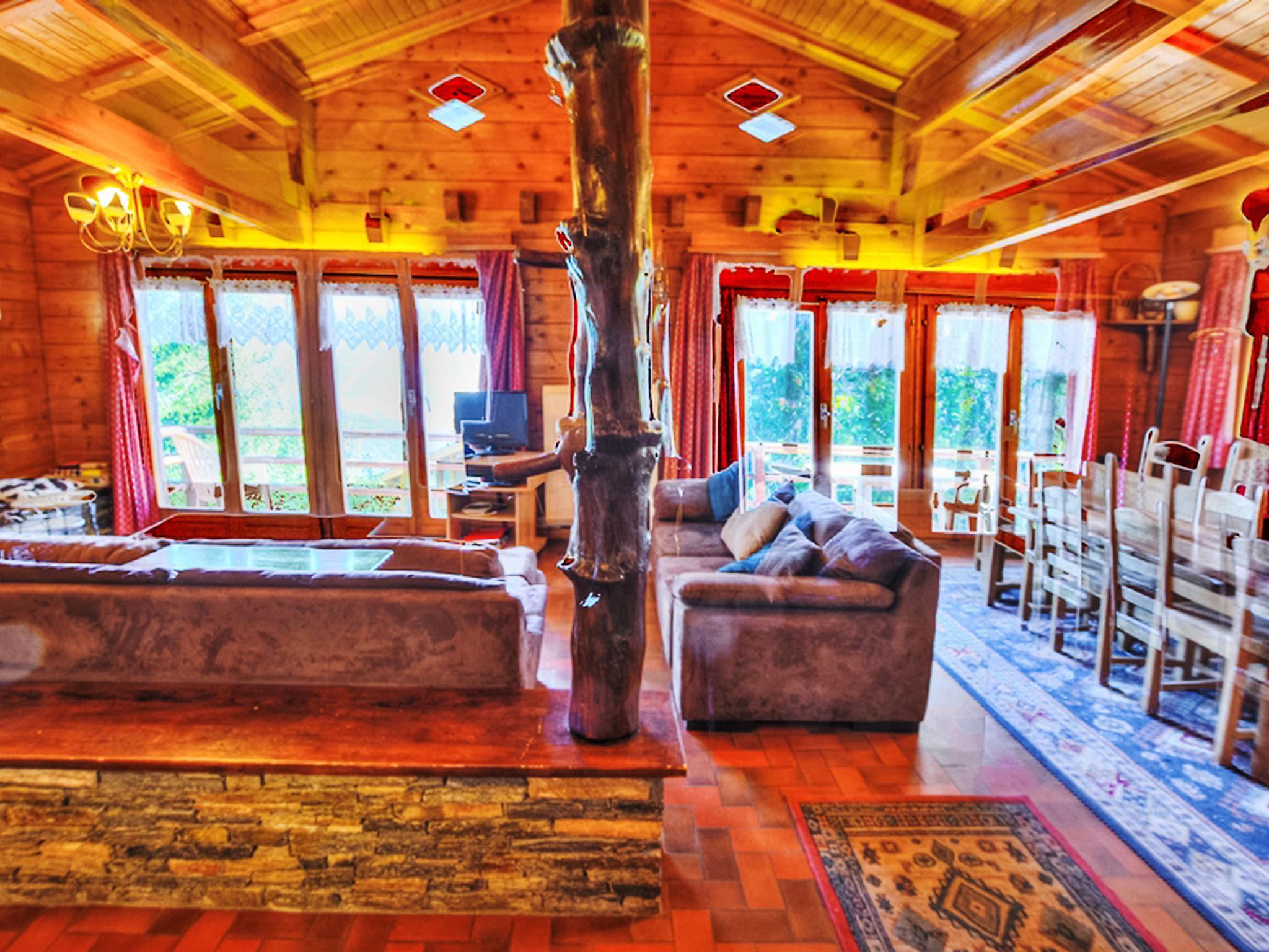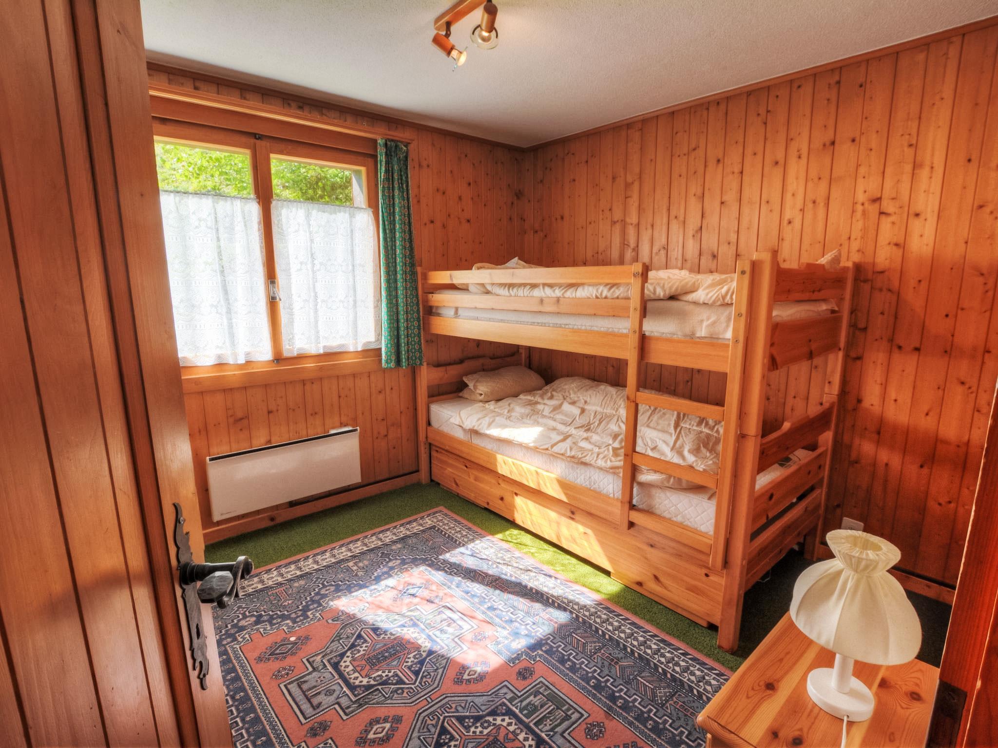 4-room chalet 120 m2 on 2 levels. Cosy furnishings: living/dining room with open-hearth fireplace, cable TV and radio. Exit to the garden, to the terrace. Kitchen (oven, dishwasher, microwave). Sep. WC. On the lower ground floor: 1 room with 1 bed and 1 double bed. 1 room with 1 bed and 1 x 2 bunk beds. 1 room with 1 double bed. 2 showers/WC. Balcony, south facing position. Terrace furniture. Beautiful view of the mountains. Please note: non-smokers only. Maximum 1 pet/ dog allowed.