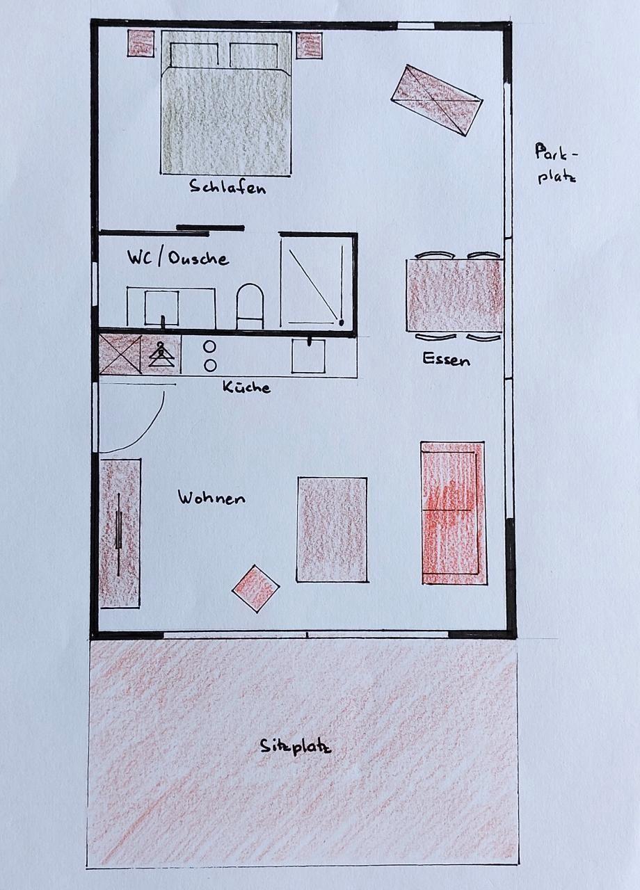 The new, detached bungalow, 45 m², is located in a quiet neighbourhood of detached houses in Arbon. The lake, shops and the historic old town are approx. 15 minutes' walk away. The public transport connections are ideal: 700 m to Seemoosriet railway station, 200 m to the nearest bus station with a direct connection to St.Gallen. The free car park right next to the bungalow is also ideal for those arriving by car. The bright bungalow has two large window fronts facing east and south, which create transparency and expanse towards the garden. The natural building materials, locally sourced wood and natural stone floors, contribute to the feel-good atmosphere. On the large seating area you can enjoy the sun from morning to evening, parasol and sun loungers available. The bedroom is furnished with a double bed (180 x 200). From the sofa bed (140x200) in the living room you can enjoy a marvellous view of the greenery, an additional folding bed is available. The fully equipped kitchen has an oven, hob, Nespresso machine and toaster. Right next to the large window is the cosy dining area. W-Lan and TV are available. The modern bathroom has a washbasin, shower and WC. You can store your own bicycles. Two bicycles are provided free of charge. Arbon is an ideal holiday location. Two pools on the lake invite you to swim. Various unique museums are located here (Saurer Museum, Möhl Most Museum, etc.). Various Swiss towns and the German shore can be reached by boat from Arbon harbour. The Lake Constance cycle path passes almost on the doorstep. Appenzellerland and Alpstein are also within easy reach. The landlords are happy to provide tips for excursions, hikes and cycle tours, and children are also well catered for with toys such as a wooden railway, books, card games, dominoes etc.