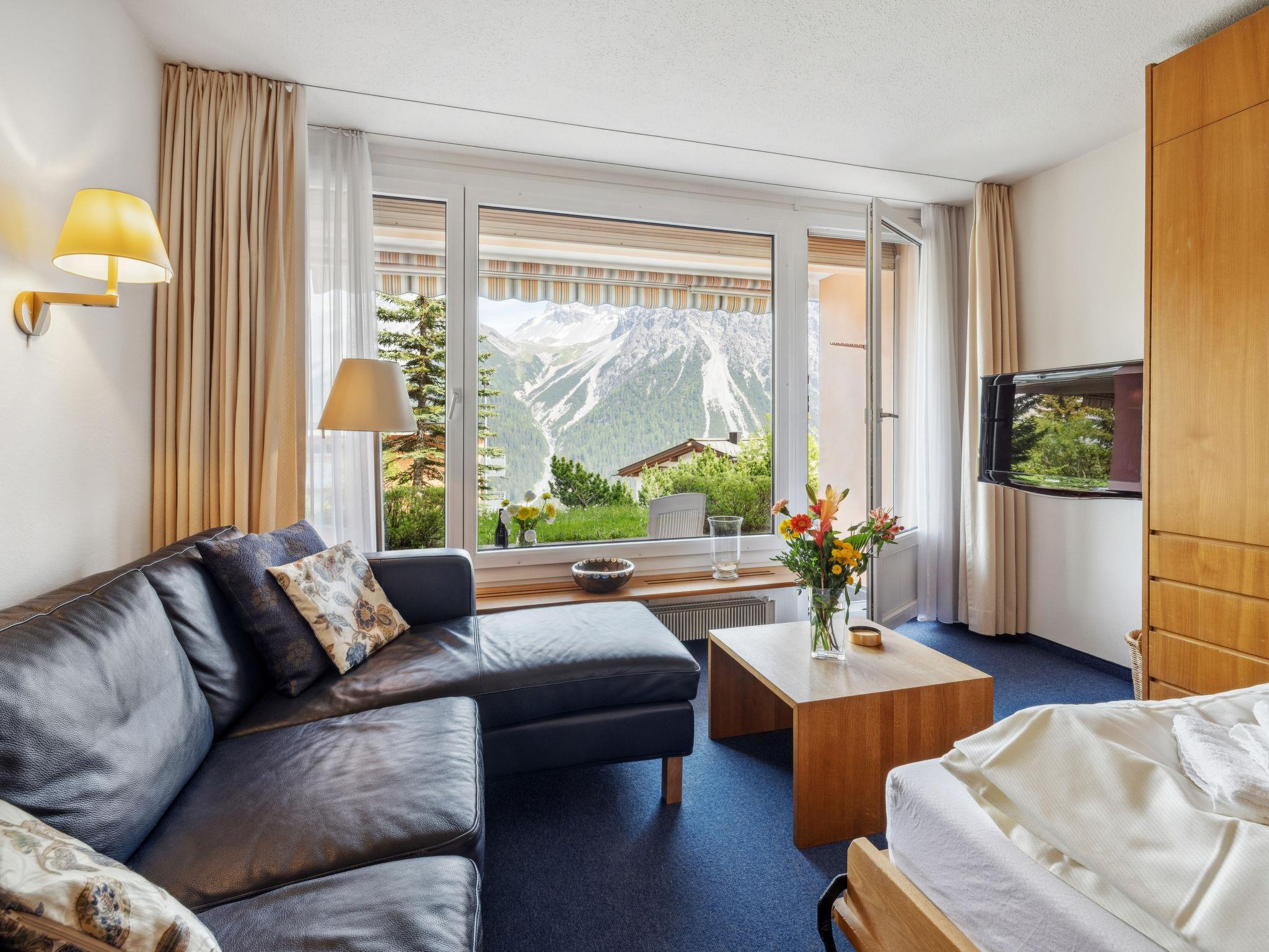 Apartment block "Promenade (Utoring)". In the resort, 500 m from the centre, in a quiet position. In the house: lounge, table tennis, kiosk, lift, storage room for skis, central heating system, washing machine (for shared use). Motor access to the house (mountain road). In Winter: please take snow chains, 4x4 car recommended in winter. Parking (limited number of spaces, extra) at the house, communal covered parking (extra), public car park at 800 m. Shop 500 m, bus stop "Arosa, Rathaus" 400 m, railway station "Arosa" 1 km. Skisport facilities, slopes, sled run 500 m. Home delivery service possible. Beautiful hiking trails right in front of the house. Attention: limited number of parking spaces! Parking space or garage space must be reserved in advance with the key holder: parking space CHF 5.00/day, covered parking space CHF 8.00/day, garage space CHF 16.00/day, payable on site. Lounge with internet connection (WiFi). Ski passes are available at reception.