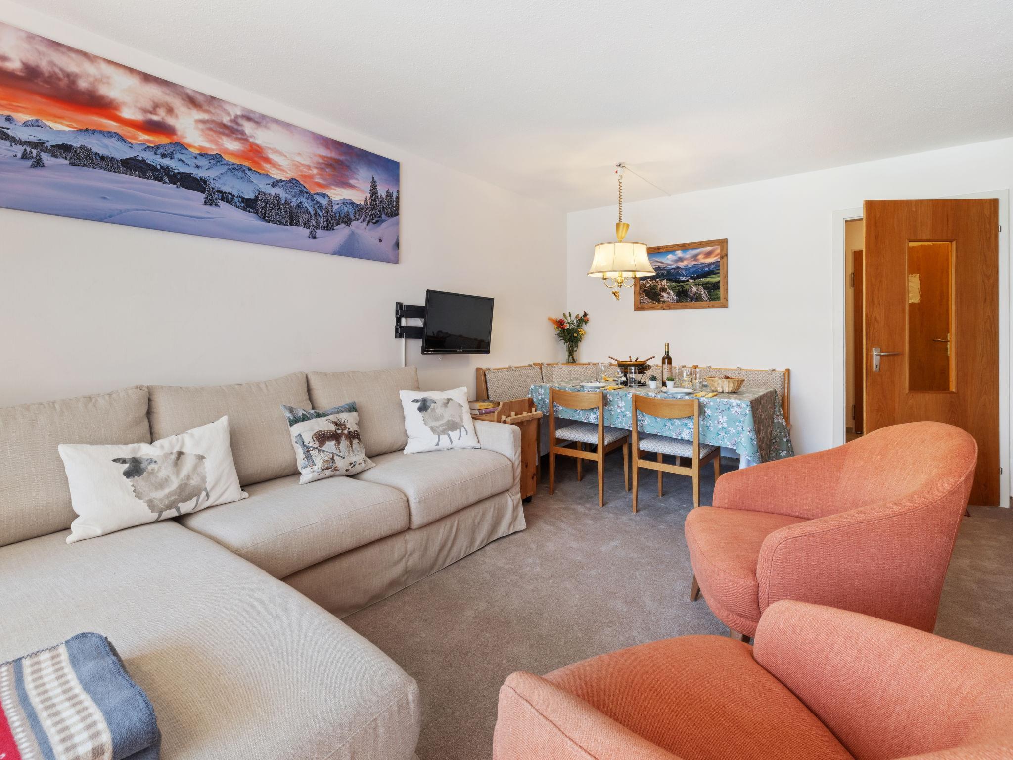 Apartment block "Promenade (Utoring)". In the resort, 500 m from the centre, in a quiet position. In the house: lounge, table tennis, kiosk, lift, storage room for skis, central heating system, washing machine (for shared use). Motor access to the house (mountain road). In Winter: please take snow chains, 4x4 car recommended in winter. Parking (limited number of spaces, extra) at the house, communal covered parking (extra), public car park at 800 m. Shop 500 m, bus stop "Arosa, Rathaus" 400 m, railway station "Arosa" 1 km. Skisport facilities, slopes, sled run 500 m. Home delivery service possible. Beautiful hiking trails right in front of the house. Attention: limited number of parking spaces! Parking space or garage space must be reserved in advance with the key holder: parking space CHF 5.00/day, covered parking space CHF 8.00/day, garage space CHF 16.00/day, payable on site. Lounge with internet connection (WiFi). Ski passes are available at reception.