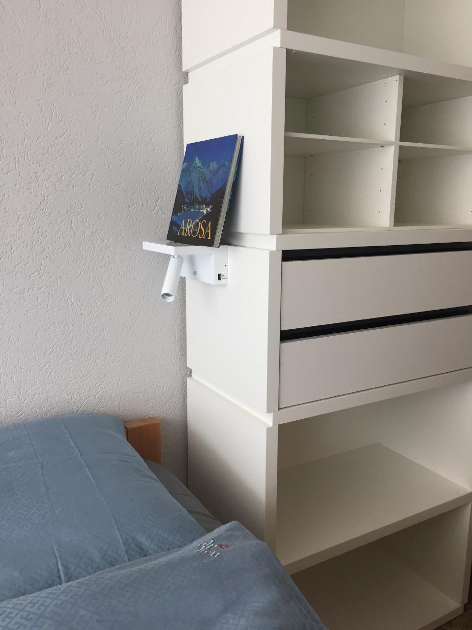 The 2-room flat on the 2nd floor is easily accessible via a lift. The living room and bedroom have access to the balcony. The balcony is sunny and the view of the marvellous mountain panorama invites you to linger. There is 1 double bed and 1 bunk bed in the bedroom and a double wardrobe bed in the living room. The spacious living room offers enough space for the kitchen with dishwasher and a cosy dining area. The bathroom is equipped with a bathtub, washbasin and toilet.