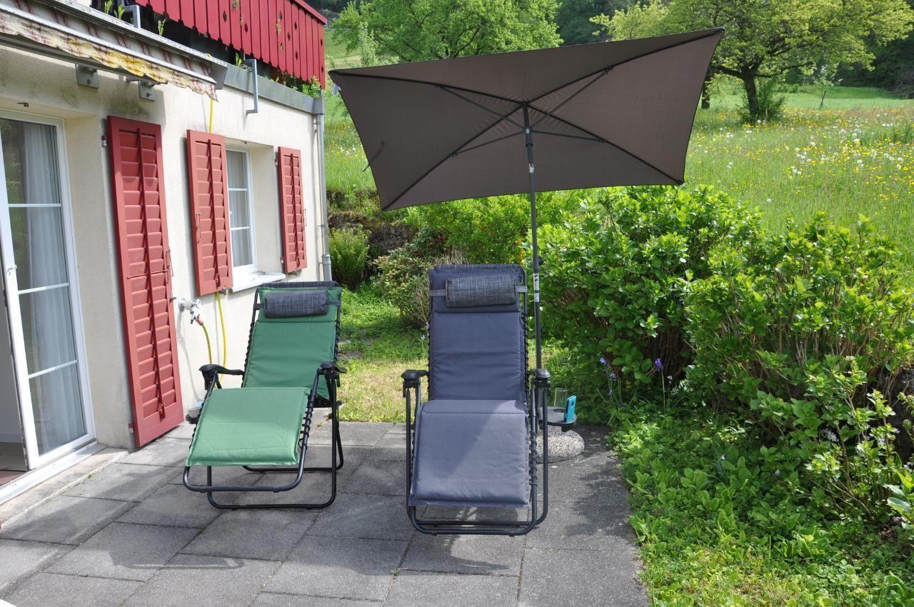 Outside the flat there is a private seating area with a table, seating and two deckchairs for you to relax. Enjoy the peaceful country life and let your gaze wander over the picturesque landscape.