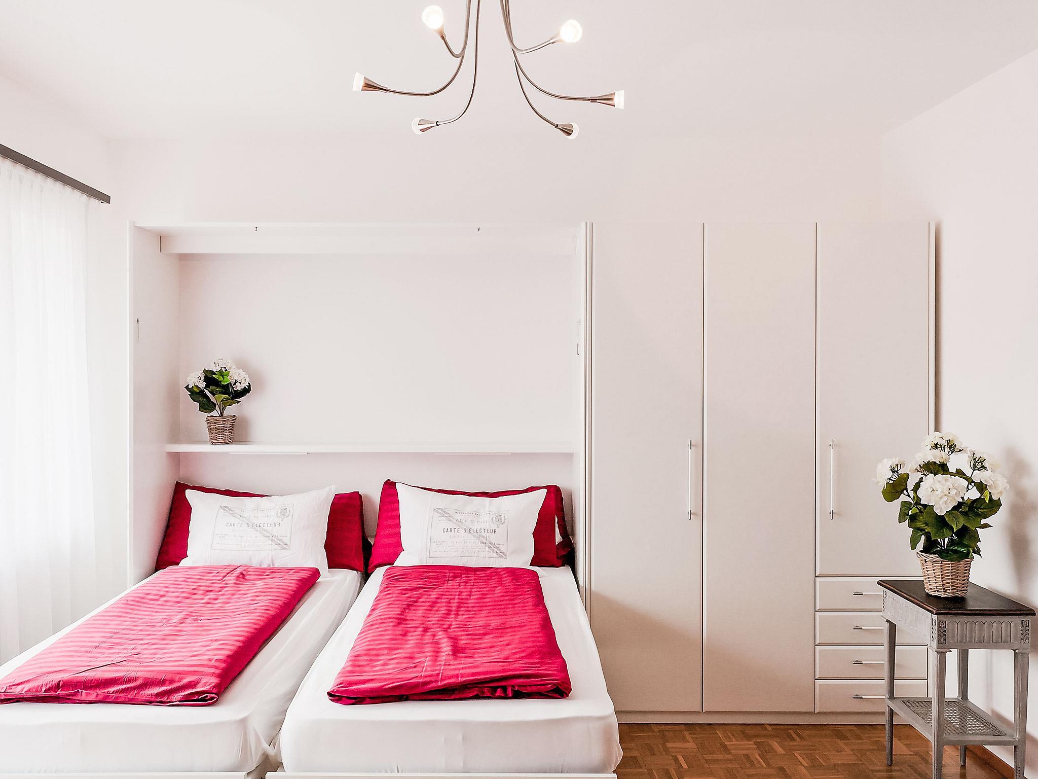 Ascona: Modern apartment block "Michèle (Utoring)". In the resort 200 m from the centre of Ascona, in a central position, traffic calmed area, 650 m from the lake, 800 m from the beach. In the house: lift, central heating system, washing machine, tumble dryer (for shared use, extra). Motor access to the house. Communal covered parking (extra), public car park at 550 m, public parking 300 m extra. Shop 850 m, grocery 200 m, supermarket 220 m, shopping centre 1.2 km, restaurant 150 m, bakery 230 m, café 200 m, pedestrian zone 850 m, 15 minute walk to the centre, bus stop "Ascona le scuole" 160 m, railway station "SBB-CFF Locarno-Muralto" 4.3 km, sandy beach "Bagno Pubblico Ascona" 800 m, bathing lake "Lago Maggiore" 700 m, lake Lago Maggiore 600 m. Golf course (18 hole) 850 m, tennis 400 m, minigolf 350 m. Nearby attractions: Isola di Brissago, Mercato Luino, IT, Falconeria Locarno, Lido di Locarno, Madonna del Sasso / Cardada, Piazza Grande, Locarno. Well-known lakes can easily be reached: Lago di Como, Lago di Lugano. Hiking paths: Cardada, Tamaro, Monte Verità, Vallemaggia, Centovalli, Valle Verzasca,Valle Onsernone. Please note: suitable for families, suitable for seniors. The photograph shows a typical example.
