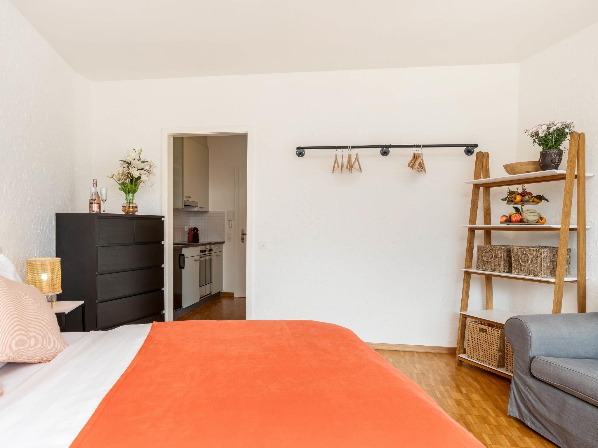 "Double Room Modern", 1-room apartment 35 m2 on 2nd floor, south facing position. Renovated: living/dining room with 1 double bed (1 x 160 cm, length 200 cm), satellite TV and radio. Kitchenette (oven, electric coffee machine, Capsules for coffee machine (Nespresso) extra). Bath/WC. Oil heating. Balcony, south facing position. Marvellous view of the lake, the mountains and the resort. Facilities: Internet (WiFi, free). Please note: non-smokers only. Maximum 1 pet/ dog allowed. NL-00004955