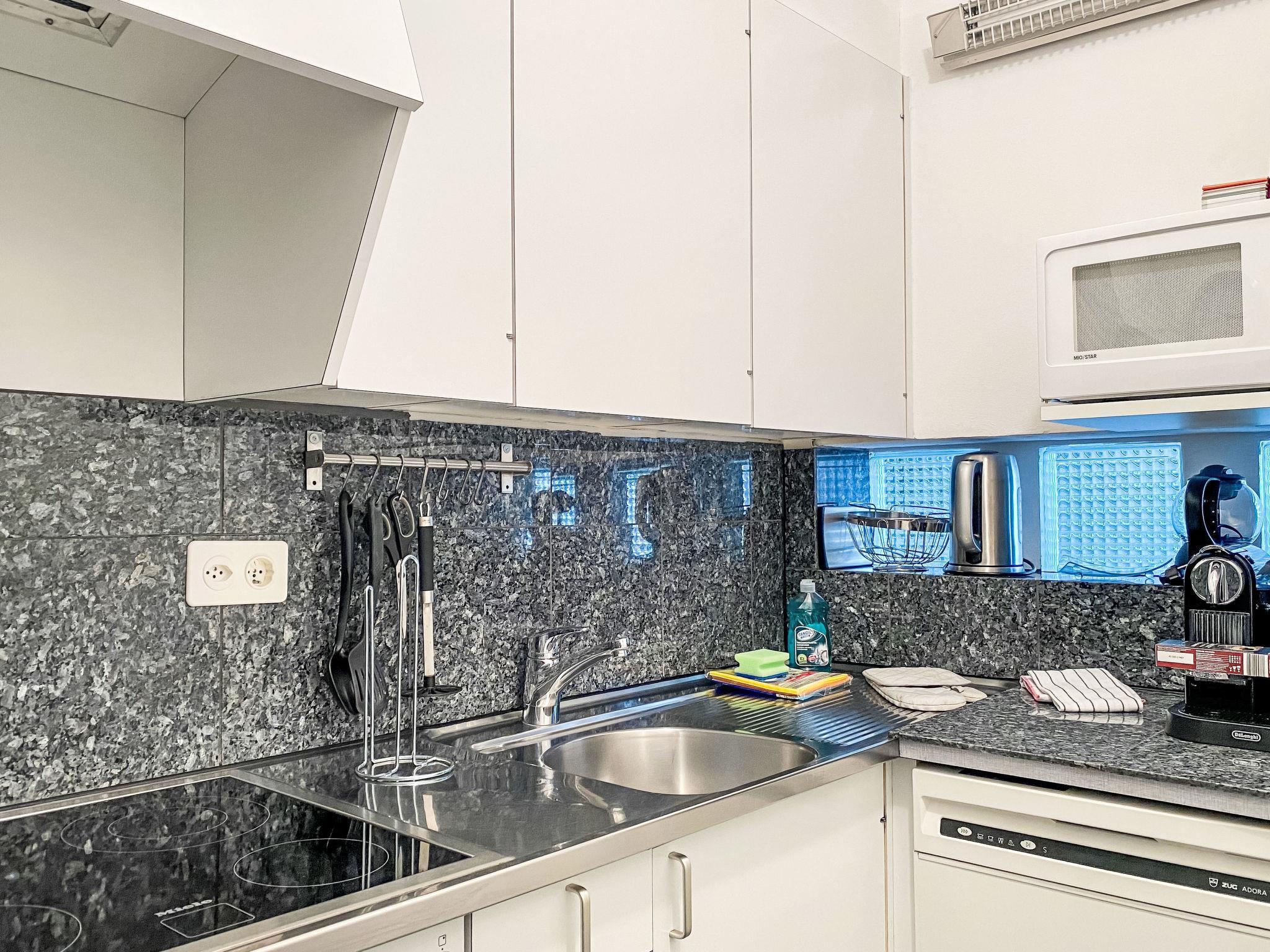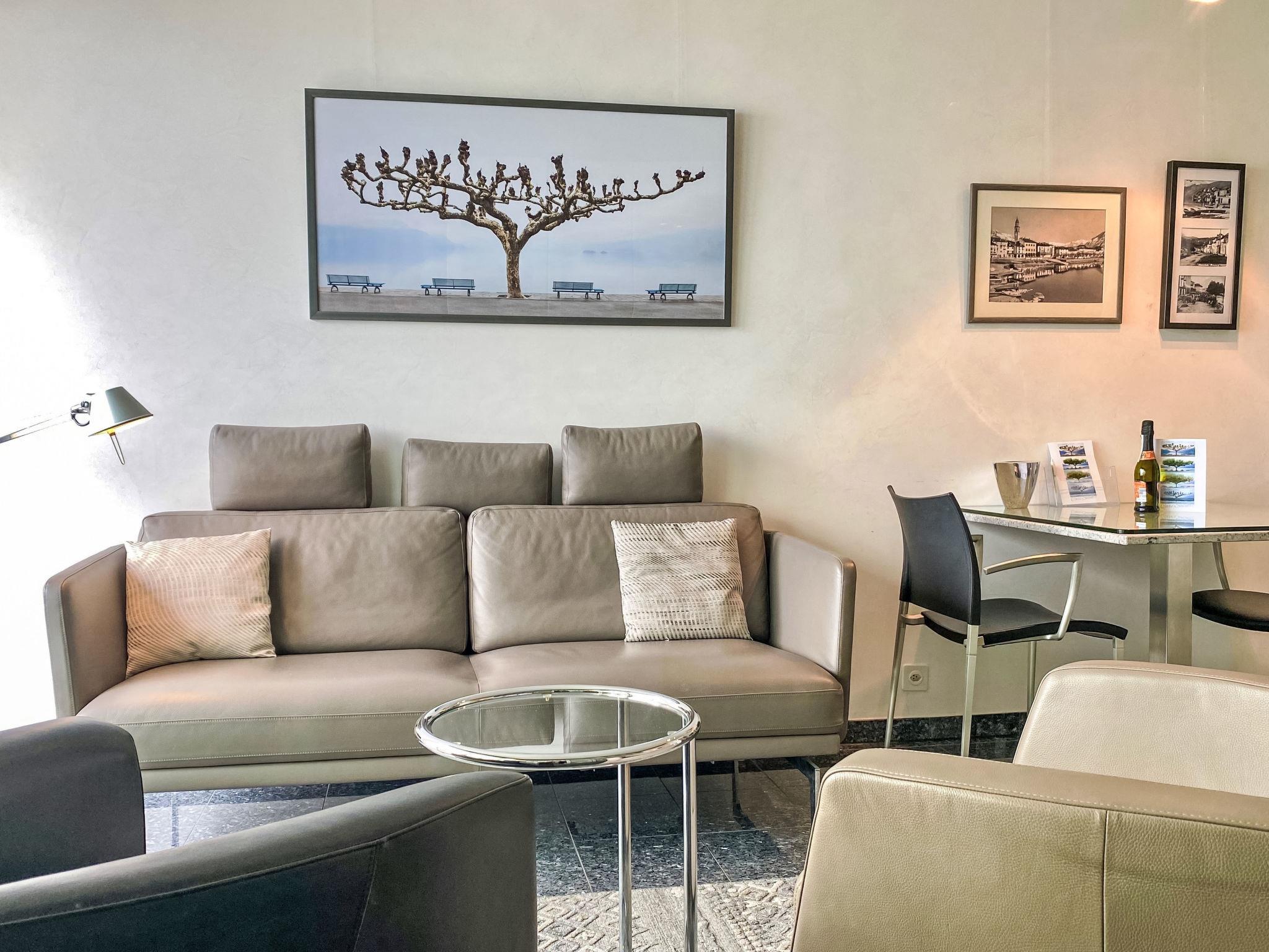 "Lakeview App 501", 1-room apartment 43 m2 on 5th floor. Spacious and bright, cosy furnishings: open living/dining room with panoramic window with satellite TV (flat screen), radio. Exit to the terrace. Alcove with 2 beds (90 cm, length 200 cm). Kitchen (oven, dishwasher, 4 ceramic glass hob hotplates, microwave, electric coffee machine, Capsules for coffee machine (Nespresso) extra). Bath/WC. Terrace, south facing position. Terrace furniture. Very beautiful panoramic view of the lake, the mountains and the countryside. Facilities: Internet (WiFi, free). Parking space n 15. Please note: non-smokers only. NL-00011472