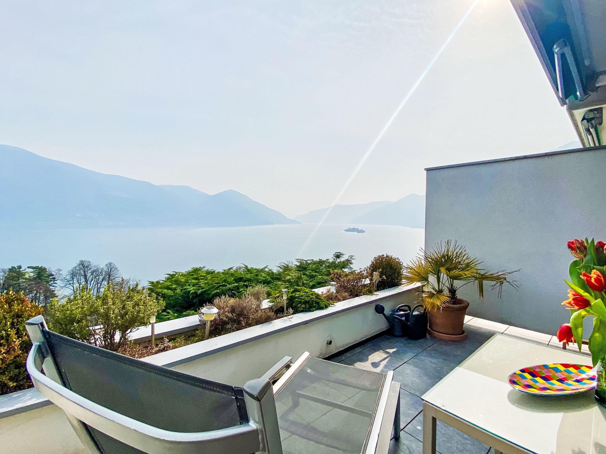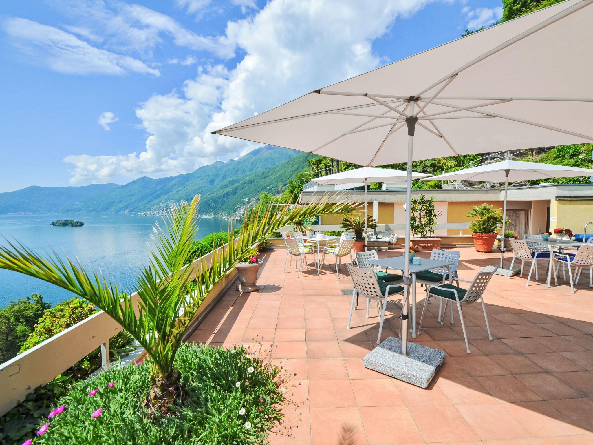 Moscia - Ascona: Beautiful residence "Sollevante". On the outskirts, 2.5 km from the centre of Ascona, in a quiet, sunny, elevated position on a slope, south-east facing position. For shared use: swimming pool (7 x 5 m, depth 190 cm, seasonal availability: 01.May. - 30.Sep.). Outdoor shower, terrace. In the house: WiFi, storage room for bicycles, central heating system. Motor access to the house. Grocery 2.5 km, restaurant 200 m, bus stop "Ascona Moscia Linie 316" 400 m, railway station "Locarno SBB" 6 km. Golf course 4 km, walking paths from the house 5 m. Nearby attractions: Madonana del Sasso, Orselina, Locarno-Ascona, Ronco sopra Ascona, Falconeria, Kamelienpark, Piazza Grande. Hiking paths: Cardada, Monte Bré, Monti di Ronco, Vallemaggia - Valle Verzasca. Please note: animals in the neighbourhood. Terrace construction with wonderful panoramic views of Lake Maggiore. A cable car connects the different levels.