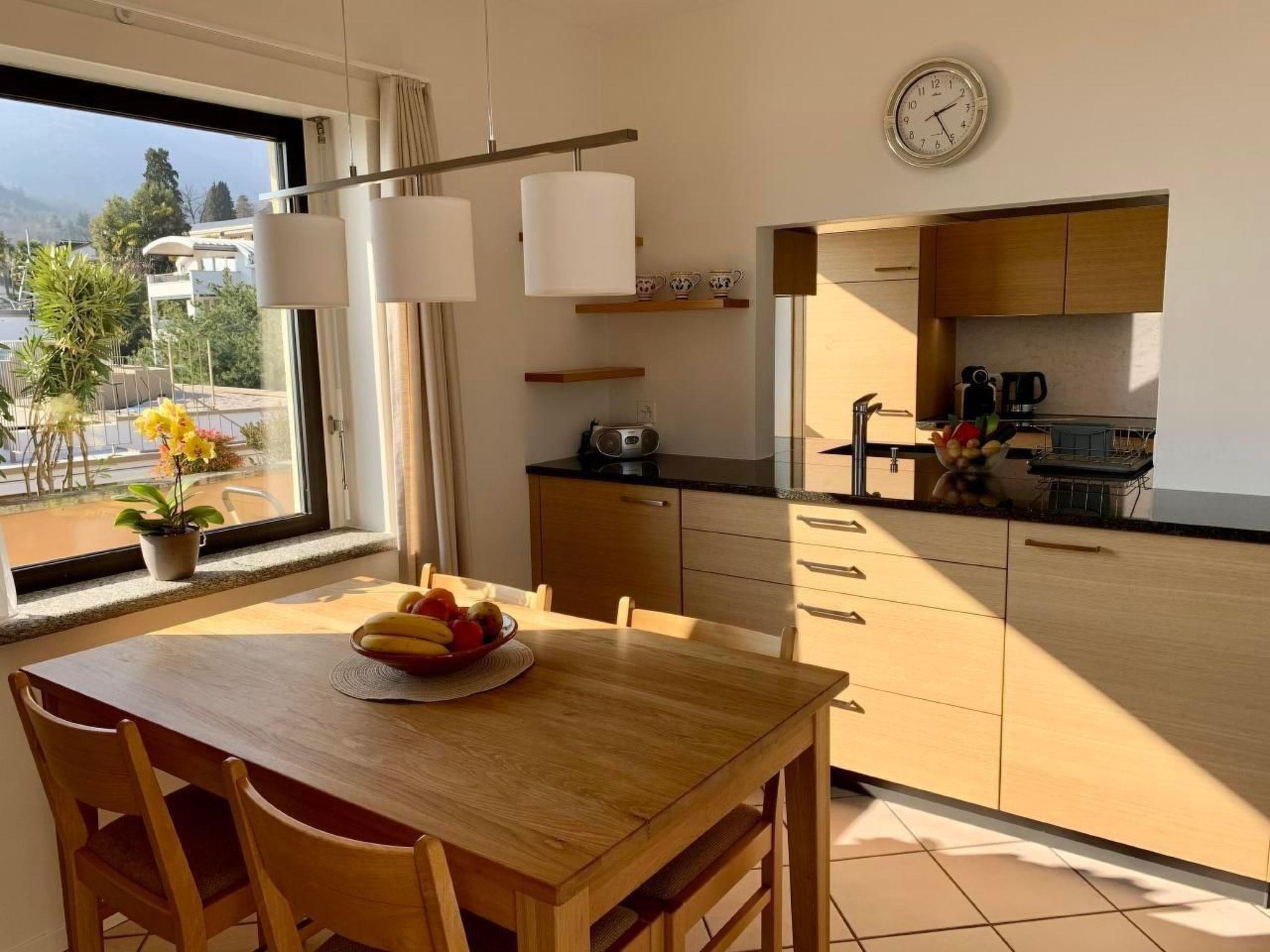 In February 2022 we completely renovated the kitchen, now with a large serving hatch into the living room and thus with a view of Ascona from the kitchen, now also with dishwasher.