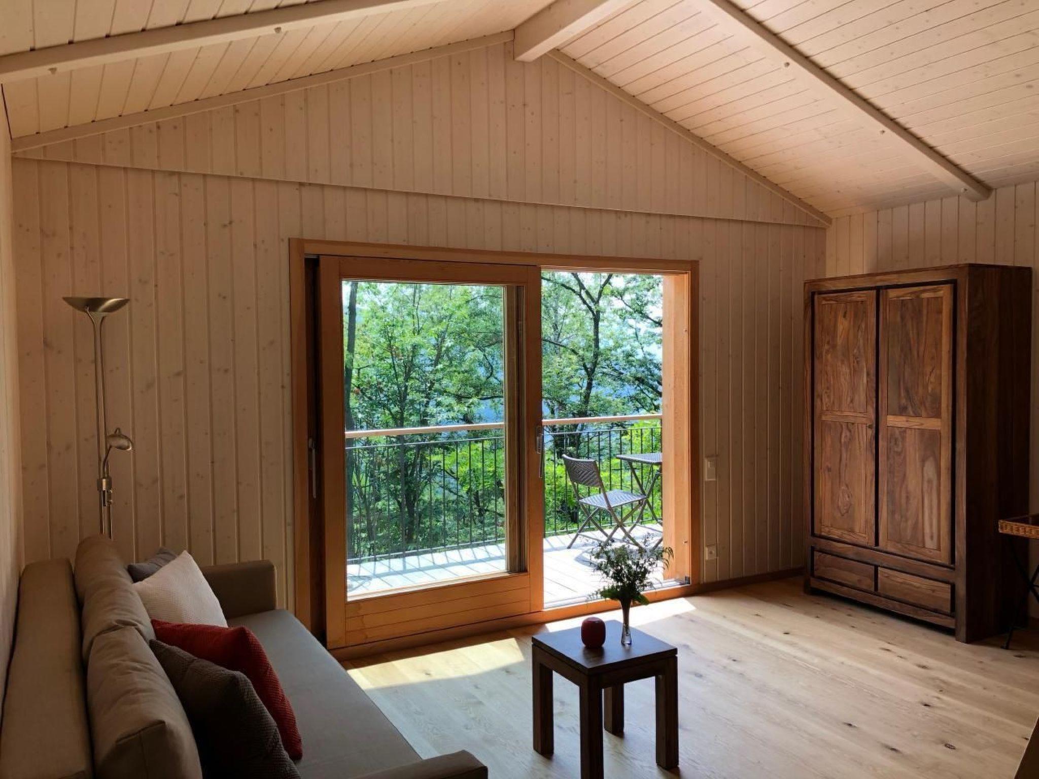This comfortable chalet with many amenities is located in the middle of the Malcantone forest. The terrace offers a beautiful view of the treetops. Access is via a natural road through the forest.