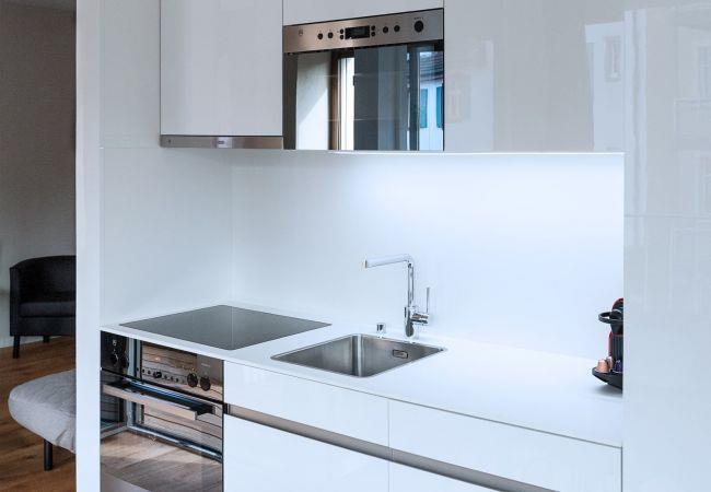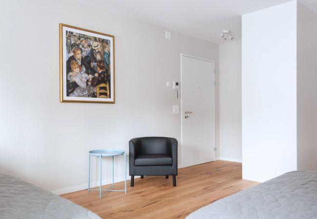 The central yet quiet holiday apartment with three rooms offers you maximum comfort on 80m2. The apartment has two bedrooms, both equipped with a queen size bed. The elegant living room with adjoining dining area and open kitchen has two pull-out sofas. In the modern kitchen, you have the opportunity to cook for yourself and spend unforgettable hours with your loved ones over a delicious meal. It is equipped with dishwasher, oven, fridge with freezer compartment, a Nespresso coffee machine and many other useful kitchen utensils.