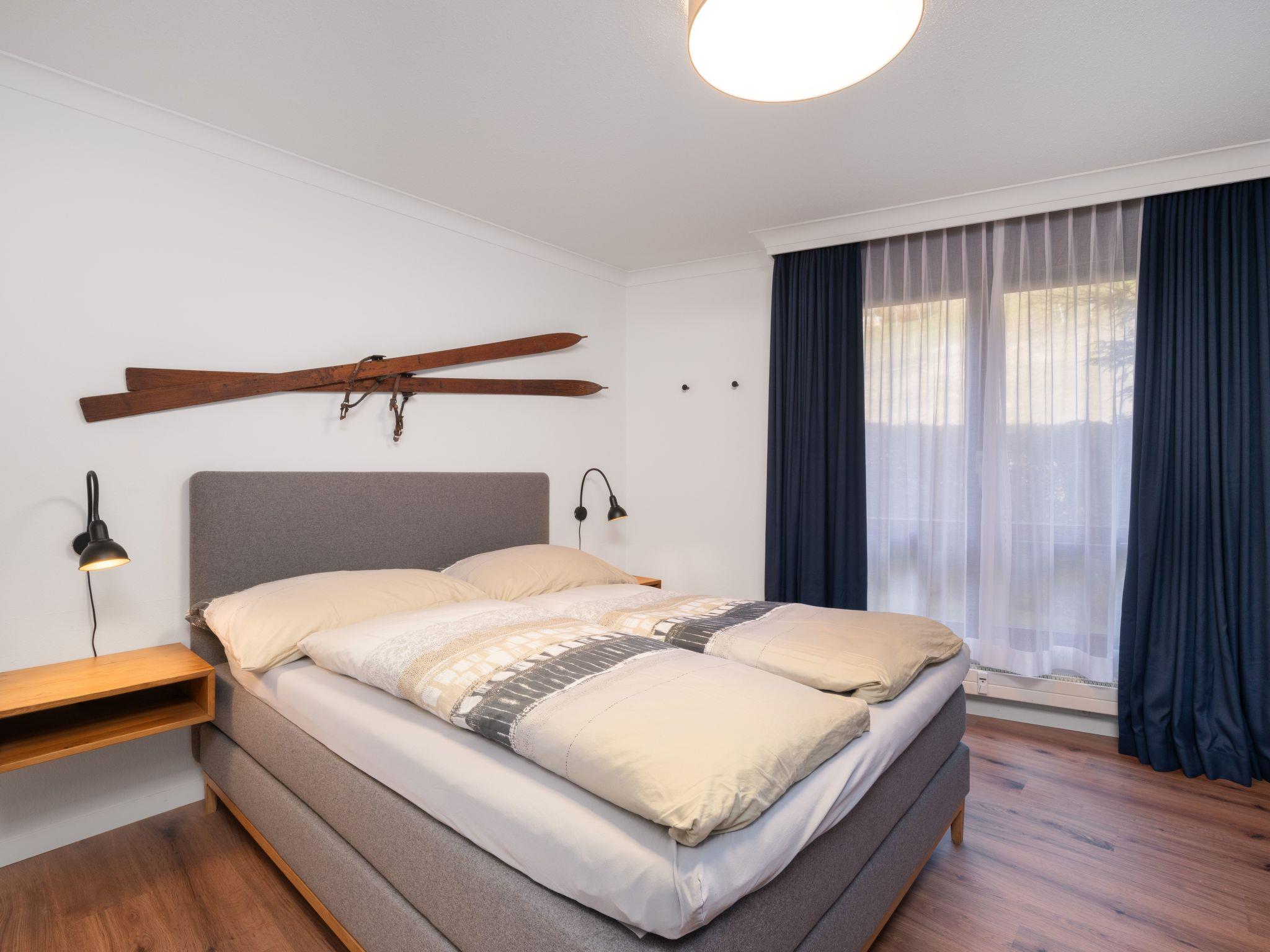 The cozy 2.5 room apartment has 1 bedroom for 2 persons and 1 bathroom with bath/shower combined and a toilet. The apartment has a fully equipped kitchenette (2 hotplates, dishwasher, Nespresso coffee machine, microwave, oven) and a cozy dining and living area with a sofa bed rotatable (day/night) for 2 more people, cable TV/radio. A balcony with a wonderful panoramic view of the surrounding mountains. Free wireless LAN and 1 underground parking space are included in the rental price. Pets are welcome, smoking in the house is not allowed. The apartment is directly connected to a 4-star hotel and the hotel facilities such as indoor pool, bio sauna, Finnish sauna, steam bath and several fitness facilities can be used free of charge.