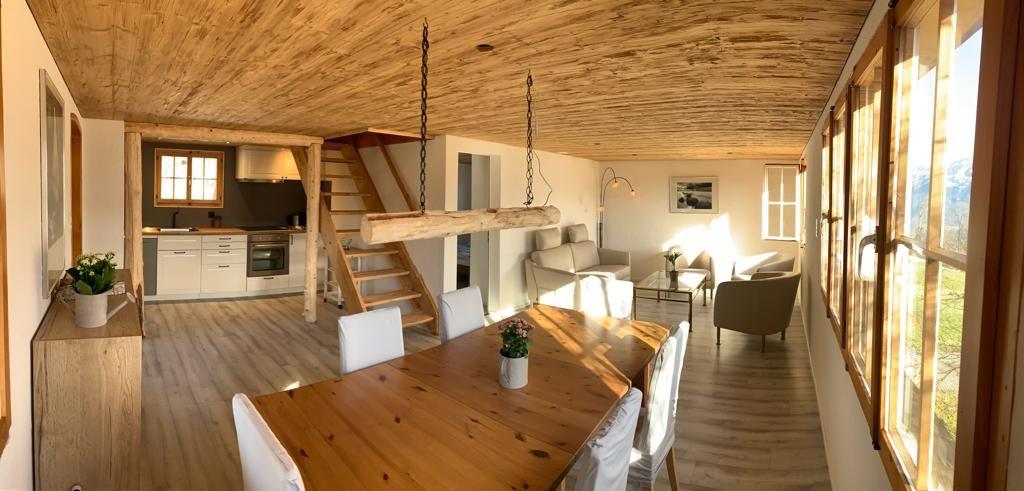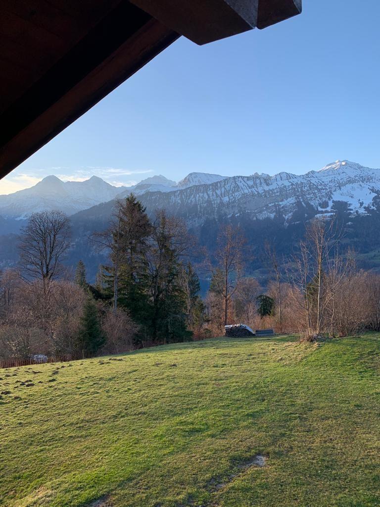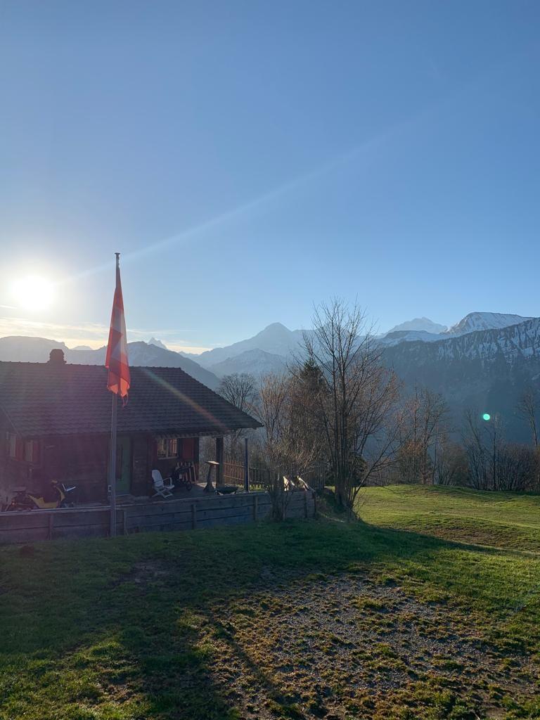 Newly renovated charming detached chalet next to Camping Wang with wonderful views of the Eiger Mönch and Jungfrau mountains. The chalet offers a beautiful living room and two bedrooms. The kitchen is fully equipped and there is a bathroom with shower. In the private garden you can barbecue in the fire bowl or relax on a deckchair. Chalet Felsli is located directly at Camping Wang - a small, natural farm campsite. The campsite has sheep, a playground and a neighbouring forest. Perfect for a family holiday. Our local mountain "Niederhorn" offers beautiful hiking possibilities, paragliding or scootering and in Interlaken there is a huge range of leisure activities such as excursions to Grindelwald, Lauterbrunnen, Top of Europe, Adventure or to the capital Bern or Lucerne in 1.5 hours and much more. We are 25 minutes away from Lake Brienz or Lake Thun. A perfect place to stay. We look forward to welcoming YOU!