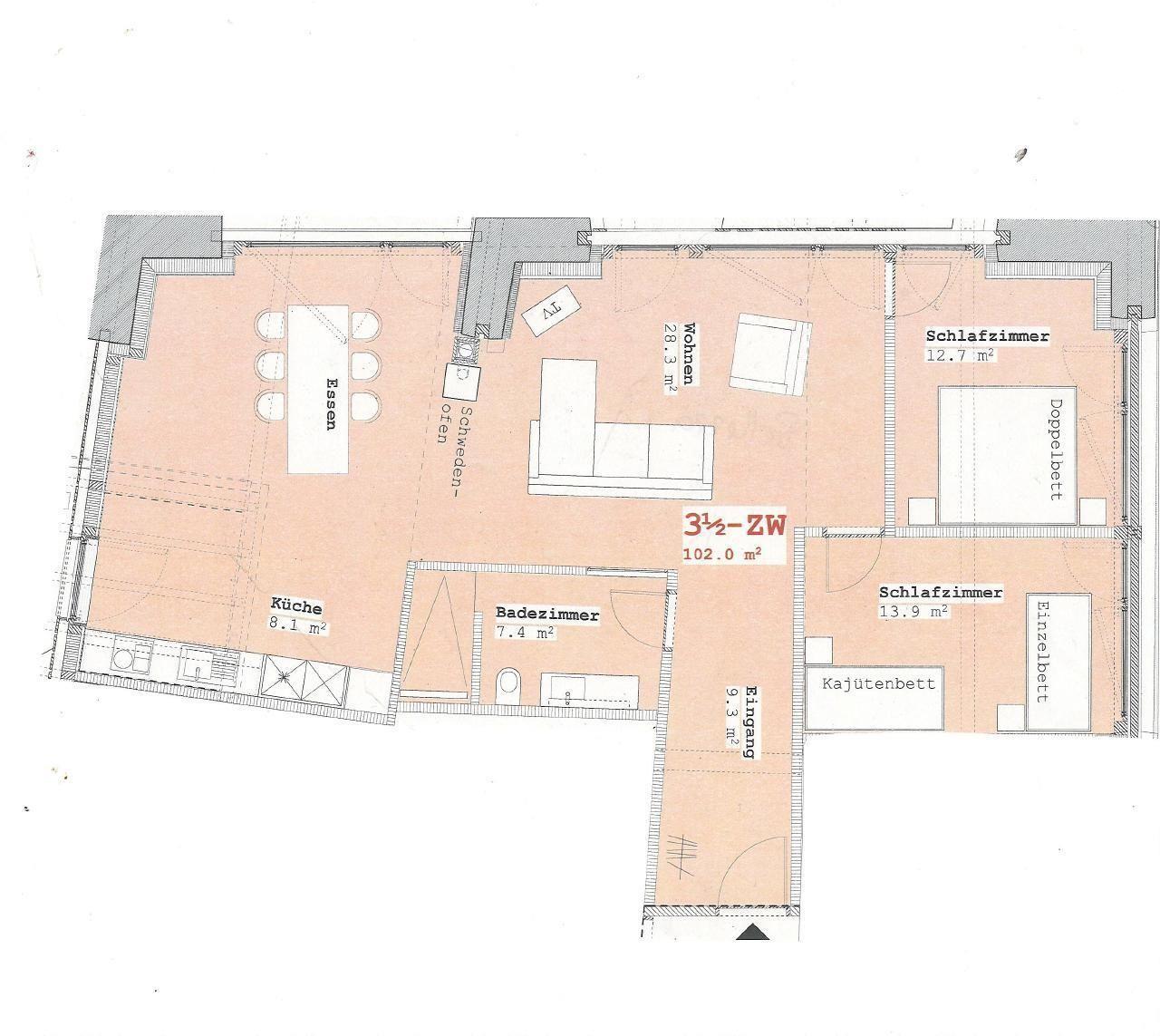 The new spacious 3.5-room holiday flat (90m2) is located on the 1st floor and offers space for 2-5 people.