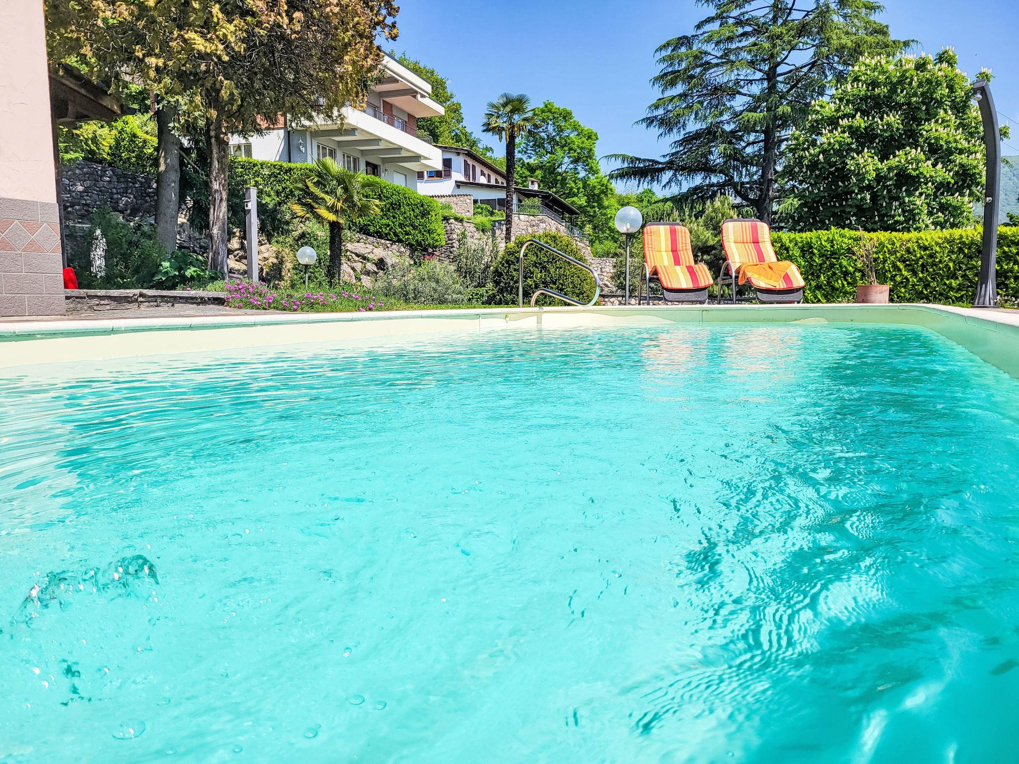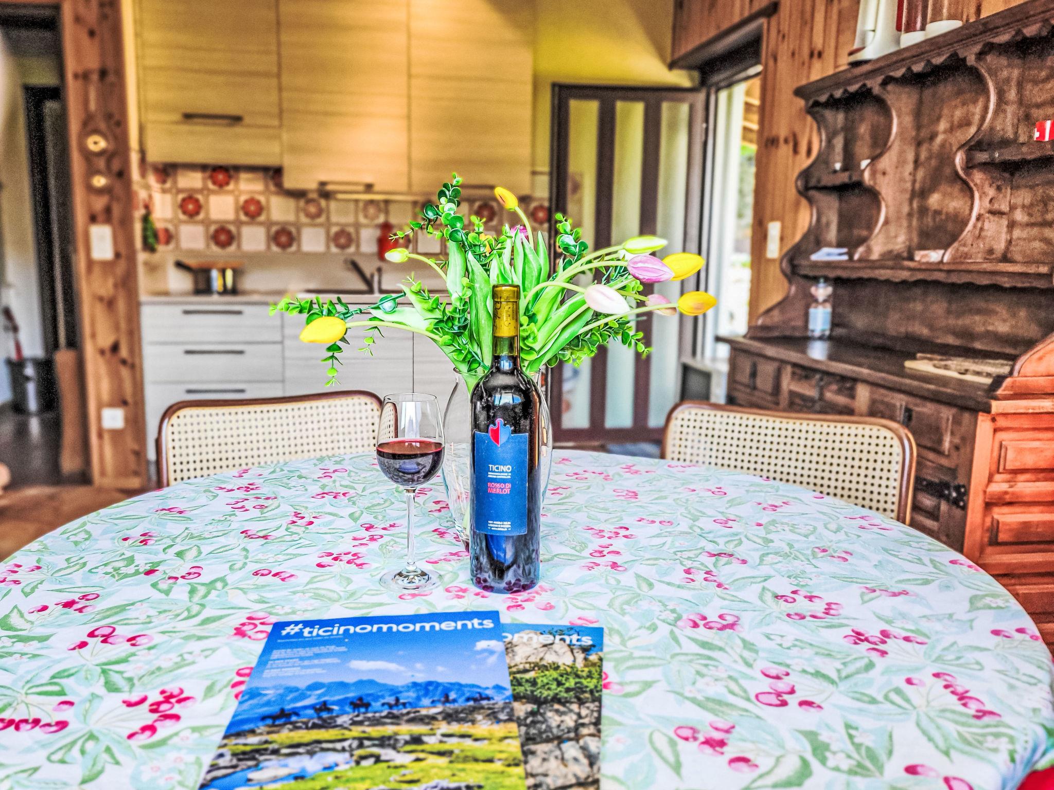 Besazio 5 km from Mendrisio: Cosy single-family house "CaSotselva", 360 m a.s.l., 2 storeys, detached, surrounded by trees and fields. On the outskirts, 300 m from the centre of Besazio, in a secluded, sunny, elevated position, 50 m from the edge of the forest, in a cul-de-sac, in the countryside, south facing position. Private: large terraced garden, 1'100 m2 with lawn and flowers, lawn for sunbathing 200 m2, swimming pool angular (8 x 4 m, seasonal availability: 30.Apr. - 30.Oct.). Outdoor shower, pool maintenance by the owner/gardener. In the house: storage room for bicycles, washing machine. Motor access to the grounds. Parking (for 2 cars). Supermarket 600 m, restaurant 1.5 km, bakery 600 m, bus stop "Besazio Paese (Linie 525 Arzo)" 250 m, railway station "Mendrisio FFS" 4.3 km, bathing lake "Lido Riva San Vitale" 6 m, lake Lago di Lugano 6 m. Walking paths from the house 50 m. Nearby attractions: Lugano mit vielen Museen 15 km, Foxtown Factory Stores 4 km, Monte San Giorgio (Unesco), Eisenbahnmuseum Galleria Baumgartner 4 km, Kirche Santi Cosma e Damiano 4 km, Como 8 km. Well-known lakes can easily be reached: Lago di Lugano 6 km, Lago di Como 8 km. Hiking paths: Tremona und Poncione d'Arzo 500 m, Monte San Giorgio (Unesco) 8 km. Please note: the owner lives in the same residence.
