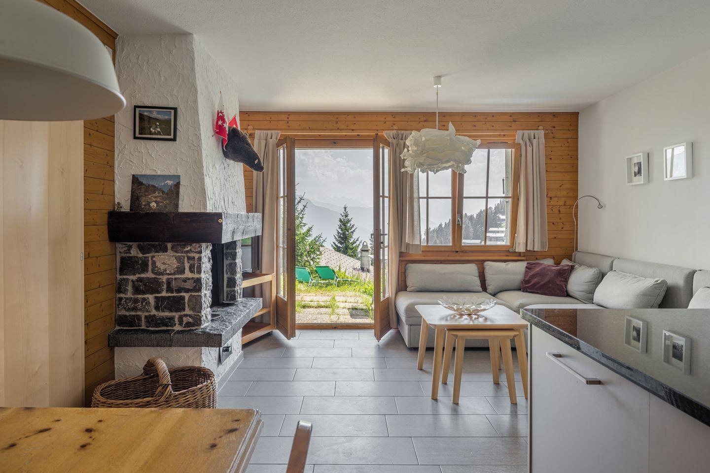Das Haus richtet sich mit dem Sitzplatz nach dem ruhigen Süden, mit freier Aussicht auf die gegenüberliegenden Berge bis hin zu den Walliser Alpen.