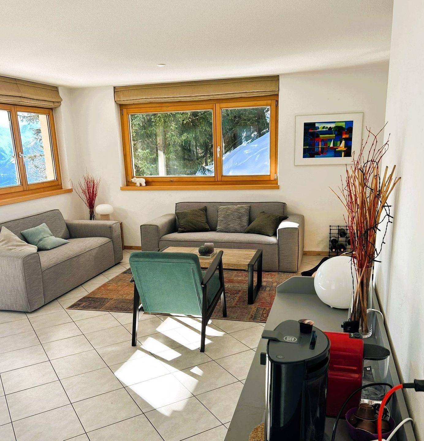 Der Zugang zum Chalet erfolgt über mehrere kurze Treppen, die sowohl hinauf als auch hinunter führen. Im Winter werden diese Treppen geräumt, können jedoch bei Neuschnee teilweise schneebedeckt sein. Die Lage des Chalets ist etwas abgelegen, was bedeutet, dass der Zugang möglicherweise mehr Aufmerksamkeit erfordert.