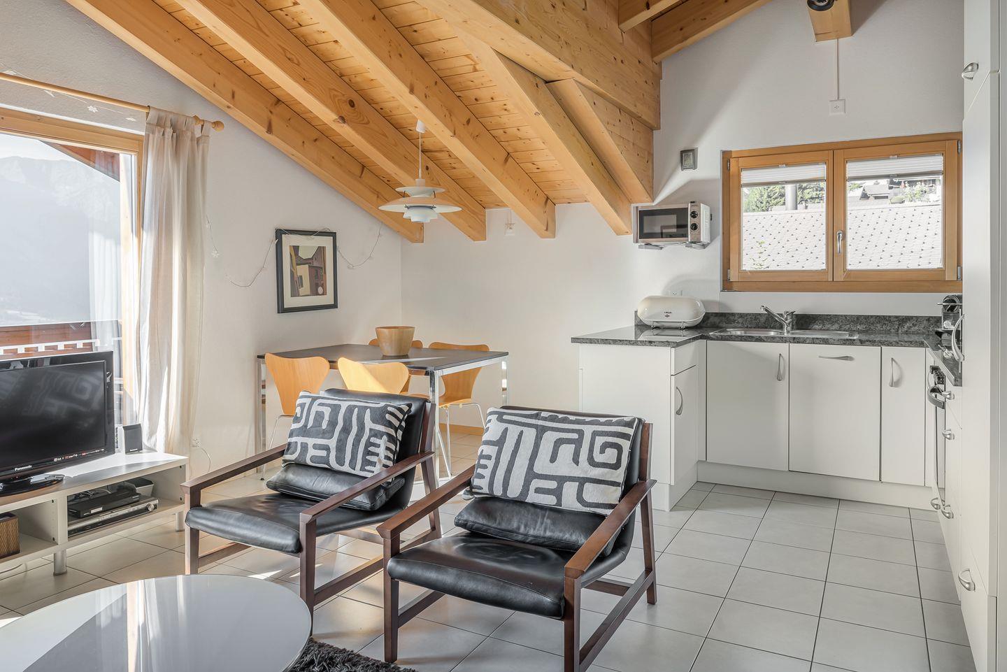 Die stilvolle Dachwohnung befindet sich in ruhiger, jedoch zentraler Lage im Ortsteil Alpmatten, nur etwa 500 m von der Seilbahnstation und ca. 100 m vom Fußgänger-Schräglift ins Ortszentrum entfernt. Im Winter gelangen Sie nach einem kurzen Aufstieg direkt mit den Skiern zum Zubringerlift des Skigebiets und können nach einem erlebnisreichen Skitag bis vor Ihre Haustür fahren. Im Sommer laden malerische Wanderwege ein, die Ihnen atemberaubende Ausblicke auf das majestätisch schneebedeckte Matterhorn sowie den Aletsch-Gletscher bieten.