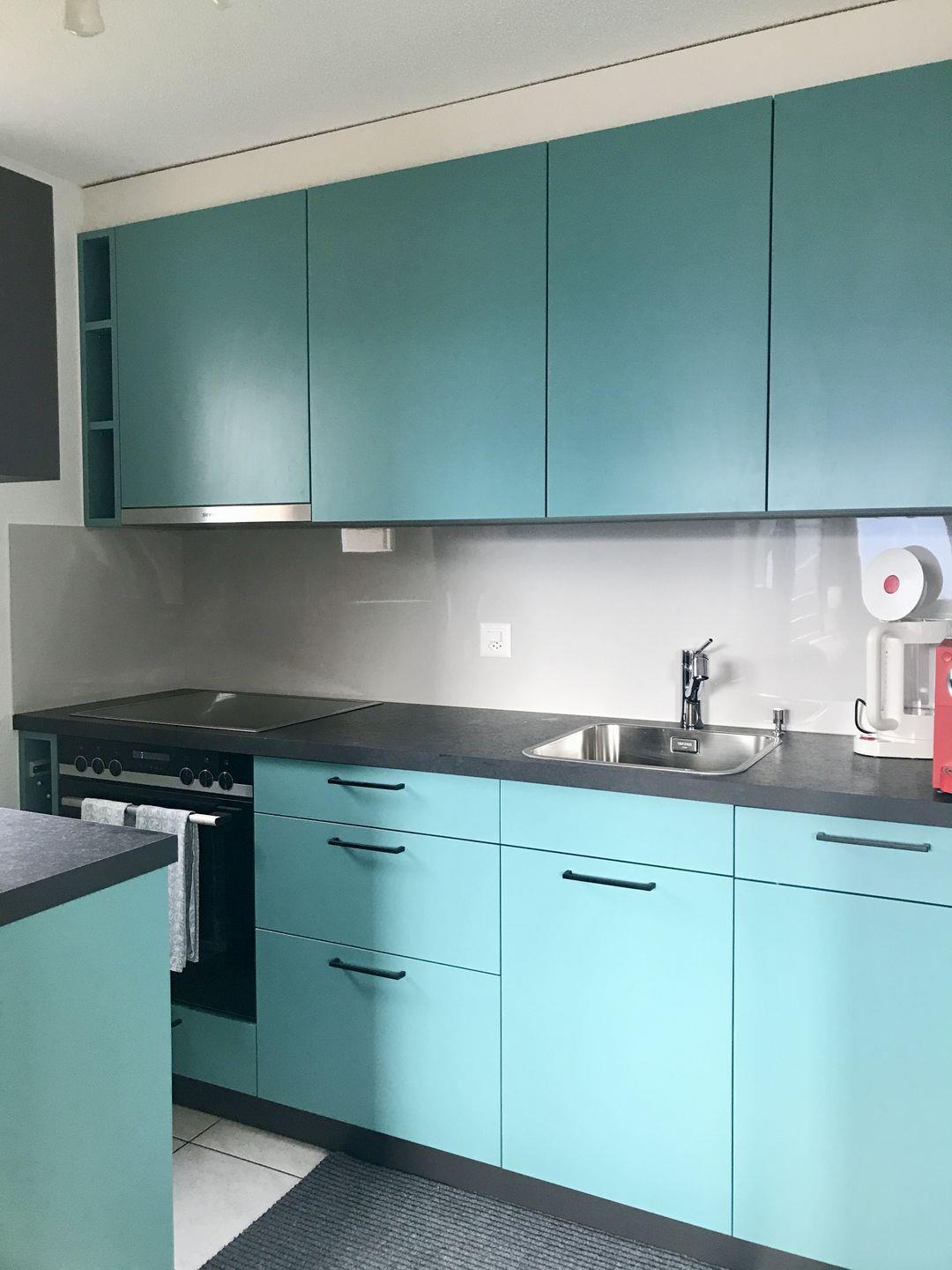 Helles Wohnzimmer mit offener Küche: Die neu renovierte Küche ist modern ausgestattet und lädt zum Kochen ein.