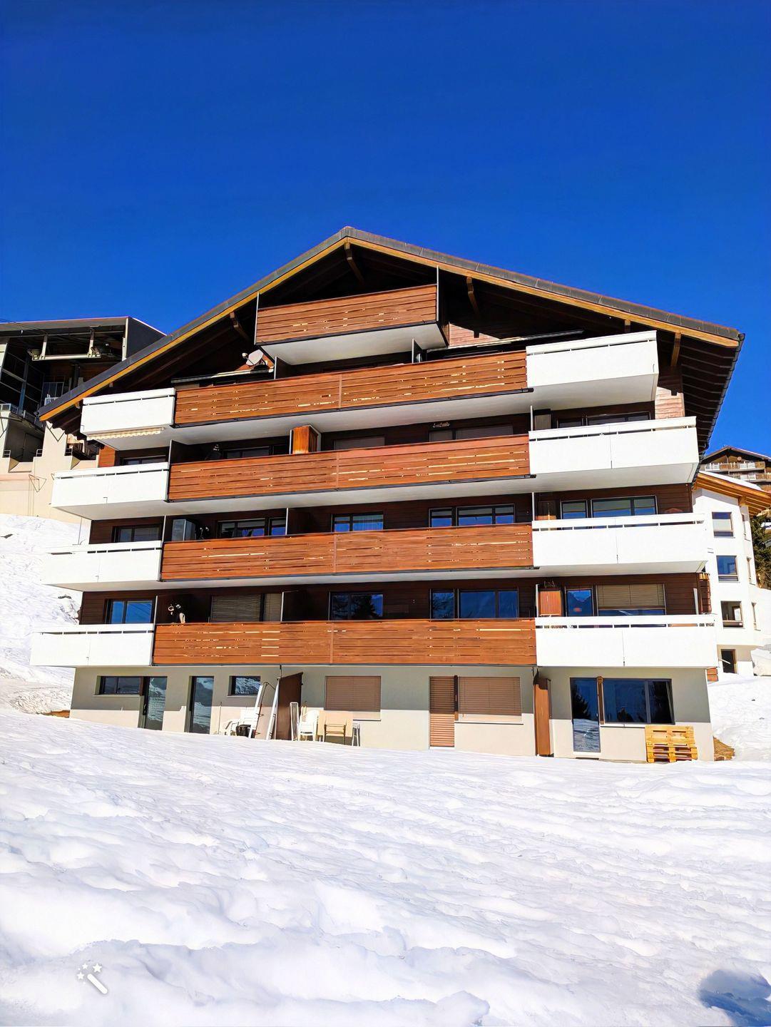 Alpenhaus: Das Alpenhaus befindet sich am unteren Ortsrand von Bettmeralp. Trotz der ruhigen Lage sind Gondelbahnen, Skilifte und der Ortskern in ca. 10 Gehminuten erreichbar. Das Haus verfügt über eine Waschküche mit Waschmaschinen und Trockner sowie einen Ski-/Snowboardraum mit Skischuhheizung. Die Balkone sind nach Süden ausgerichtet und bieten Blicke auf die gegenüberliegenden Berge bis zu den Walliser Alpen. Im Winter ist das Haus am Ende eines Skitages direkt mit den Skiern erreichbar; die umliegende Wiese lädt im Sommer zum Toben und Sonnen ein, im Winter zum Iglu-Bauen.