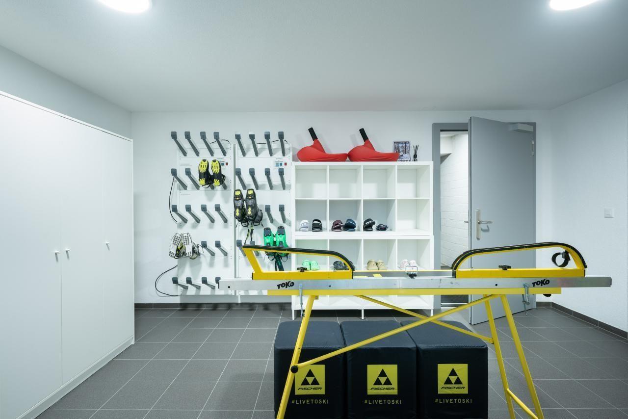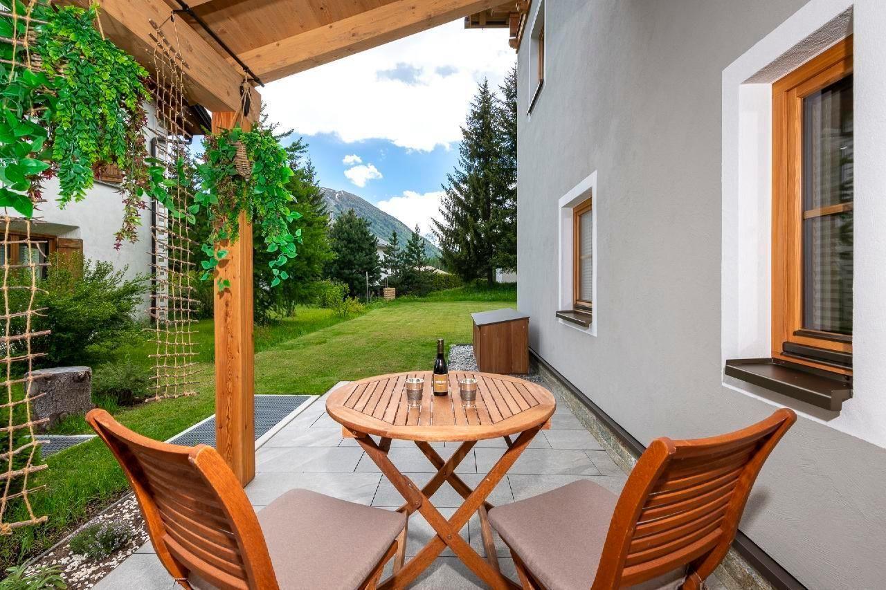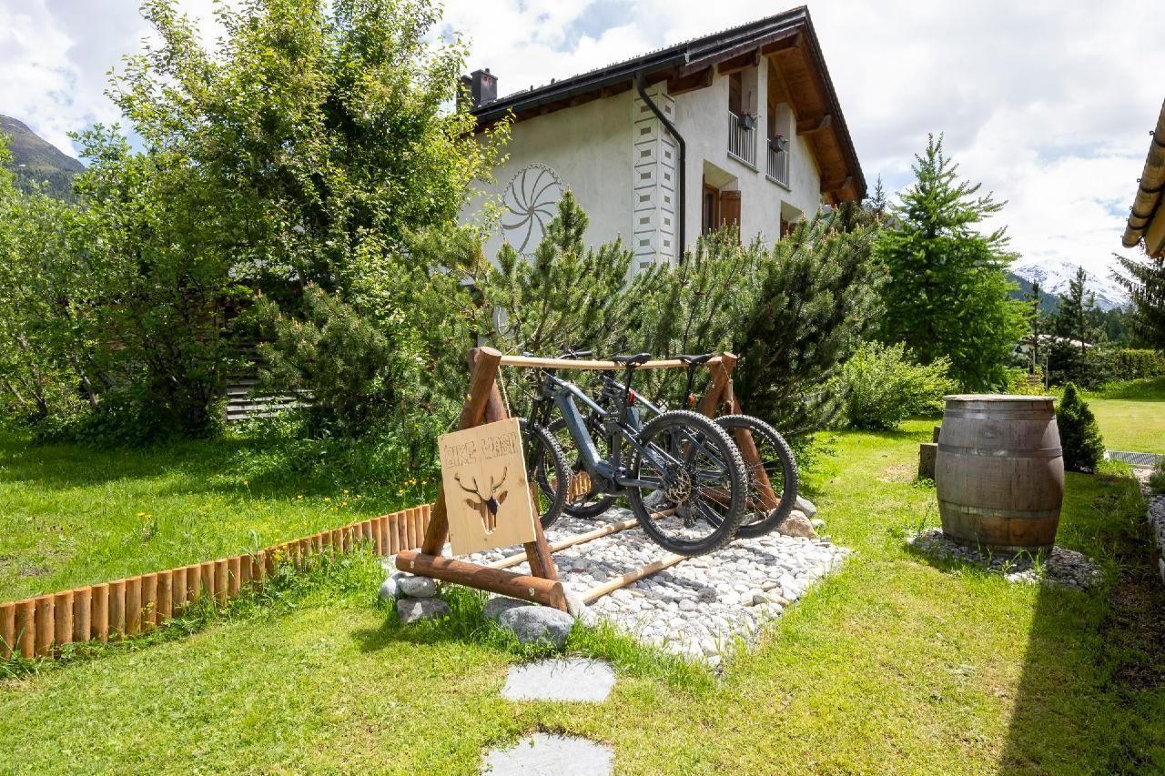 The outdoor area of the chalet blends harmoniously into the natural surroundings and offers direct access to cross-country ski trails in the winter months. Nestled in lush meadows and surrounded by rustic forests, you can enjoy the peace and beauty right on the edge of the village. The private terrace with garden furniture invites you to relax and offers an unrivalled view of the Bernina massif and the impressive mountains of the Engadine.