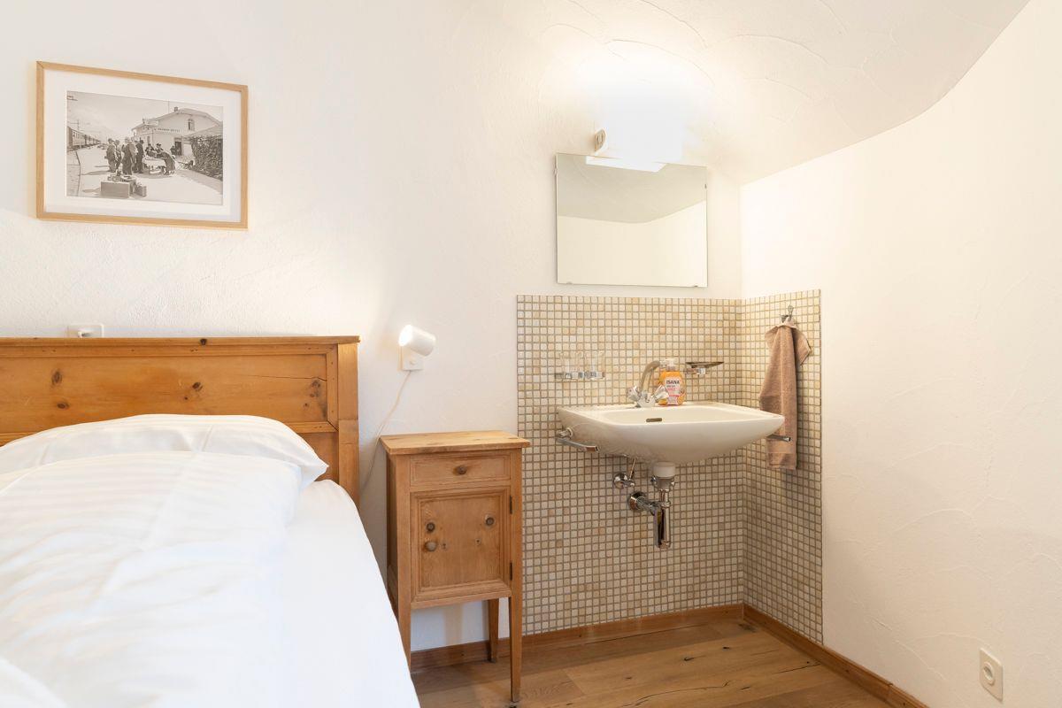 The outside area of the flat boasts a very small but lovely balcony, which offers a unique view of the charming village centre with its church and the breathtaking mountain backdrop of the Engadine. The exclusive amenities also include parking spaces in a subterranean garage as well as additional parking spaces outside and close to the house.