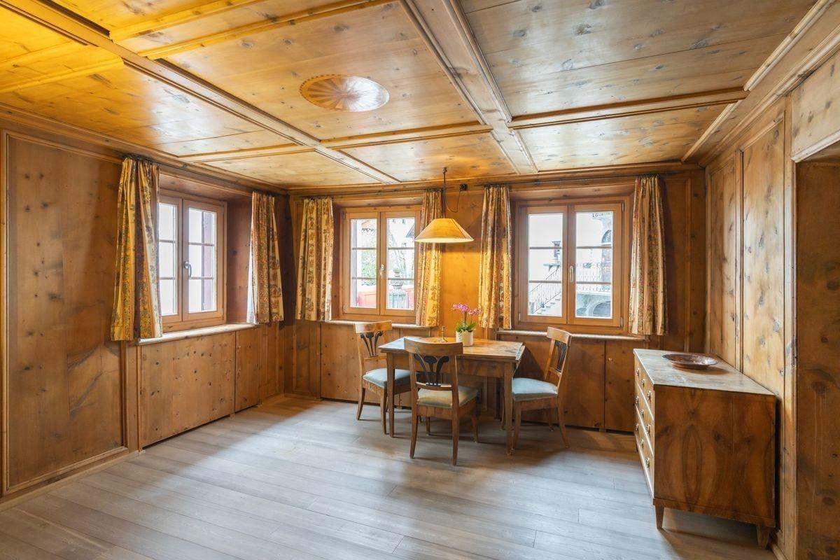 Die Wohnung Bernina verbindet traditionellen Engadiner Stil mit grosszügigem Wohnkomfort. Besonders hervorzuheben ist die Kombination aus antiken Möbeln, Engadiner Holzarbeiten und liebevollen Details, die dem Raum eine elegante, warme Atmosphäre verleihen. Im grossen Wohnzimmer sorgt das Cheminée für gemütliche Abende, während die historische Engadinerstube mit Esstisch, Eckbank und zwei zusätzlichen Betten den authentischen Charakter der Wohnung unterstreicht. Die Gewölbeküche ist vollständig ausgestattet und lädt zum gemeinsamen Kochen ein. WLAN, Netflix-TV und Bodenheizung bieten modernen Komfort, während das Haus selbst Geschichte und Charme atmet. Hunde sind herzlich willkommen, und der Check-in erfolgt unkompliziert über eine Schlüsselbox.