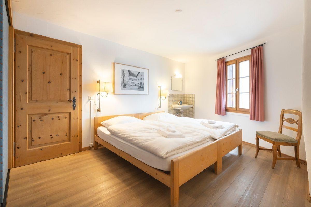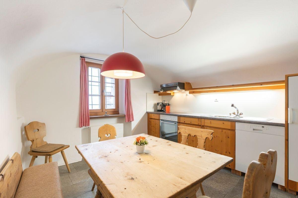 Die Wohnung Bernina bietet auf grosszügigen 96 m² traditionellen Engadiner Charme kombiniert mit modernem Wohnkomfort. Der elegante Wohnbereich mit Cheminée, Ledersofas und antiken Möbeln lädt zu gemütlichen Stunden ein. Die angrenzende Engadinerstube mit Esstisch, Eckbank und zwei zusätzlichen Betten verleiht der Wohnung eine besonders heimelige Atmosphäre. Die historische Gewölbeküche ist vollständig ausgestattet – mit Kochherd, Backofen, Geschirrspüler, Kühlschrank, Nespresso-Maschine, Toaster und Geschirr. Das separate Schlafzimmer mit zwei Einzelbetten bietet Rückzugsraum und Erholung. Das Badezimmer verfügt über eine Badewanne mit Duschvorrichtung, WC, Waschbecken und Haartrockner. WLAN, ein Flachbild-TV mit Netflix und Bodenheizung sorgen für zeitgemässen Komfort. Ideal für bis zu vier Personen, die Grosszügigkeit, Ruhe und Authentizität im Herzen des Engadins schätzen.