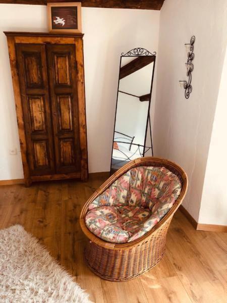 The interior of the house features an eat-in kitchen equipped with all modern conveniences, including a refrigerator/freezer, hot air oven, electric cooker, and other small appliances essential to daily life such as a slicer, coffee pod machine, kettle and toaster, all enhanced by a traditional wood-burning fireplace. The carefully decorated living room offers a cosy sofa, television and a pellet stove, perfect for relaxing evenings, while the recently renovated bathroom has all the necessary amenities including a spacious shower. Three spacious bedrooms can accommodate up to six people plus a small child, providing space and comfort for the whole family.