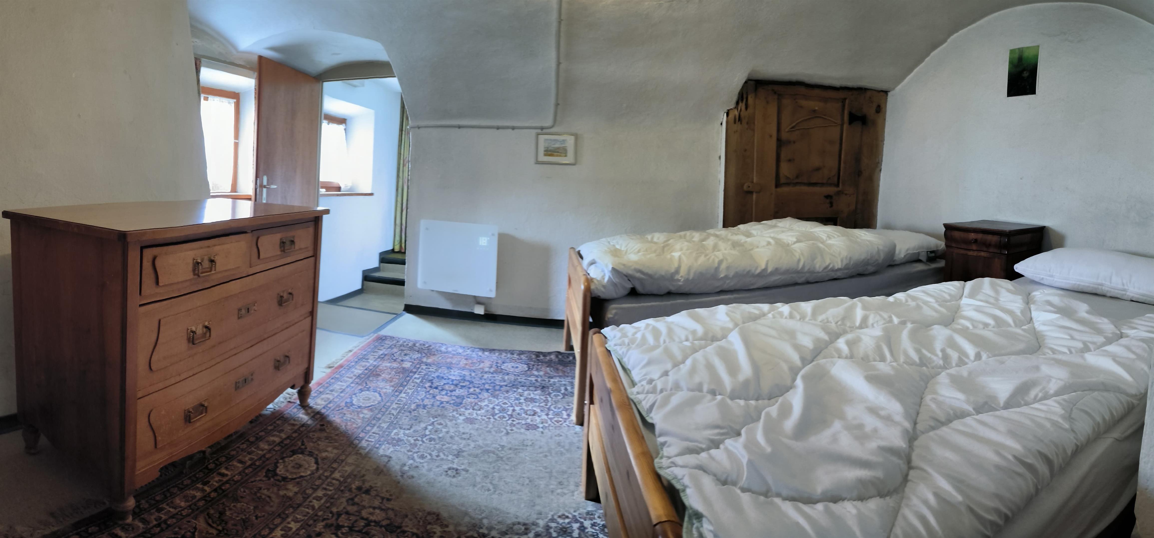 The holiday home is located in the centre of the village of Borgonovo, in a quiet and sunny position and offers a unique view of the mountains and especially up the valley. The living areas are spacious and functionally furnished. The house has a small garden with a seating area.