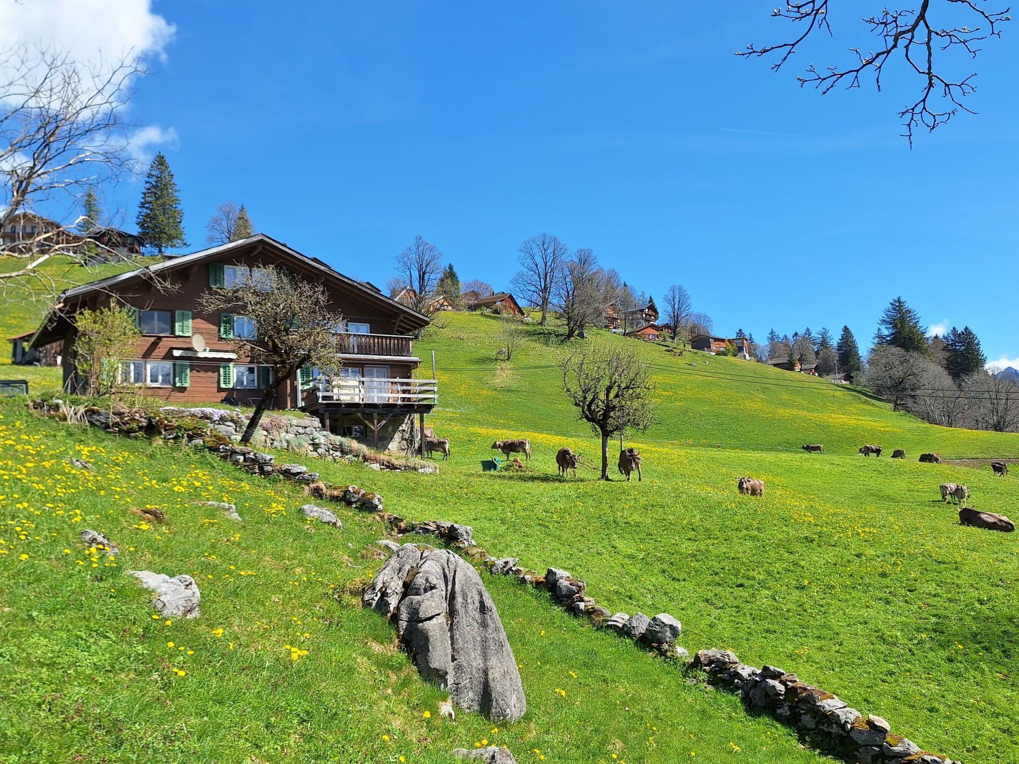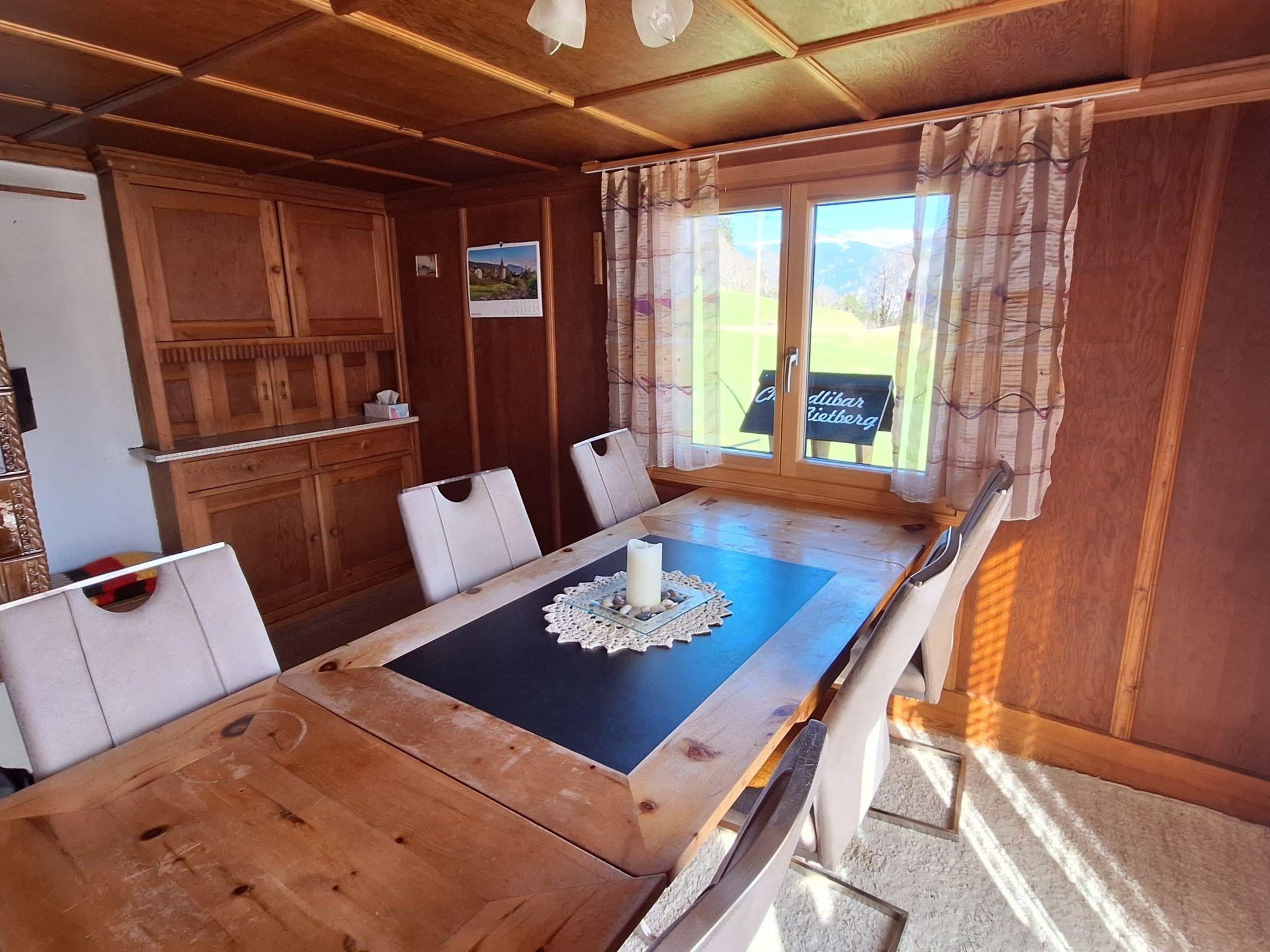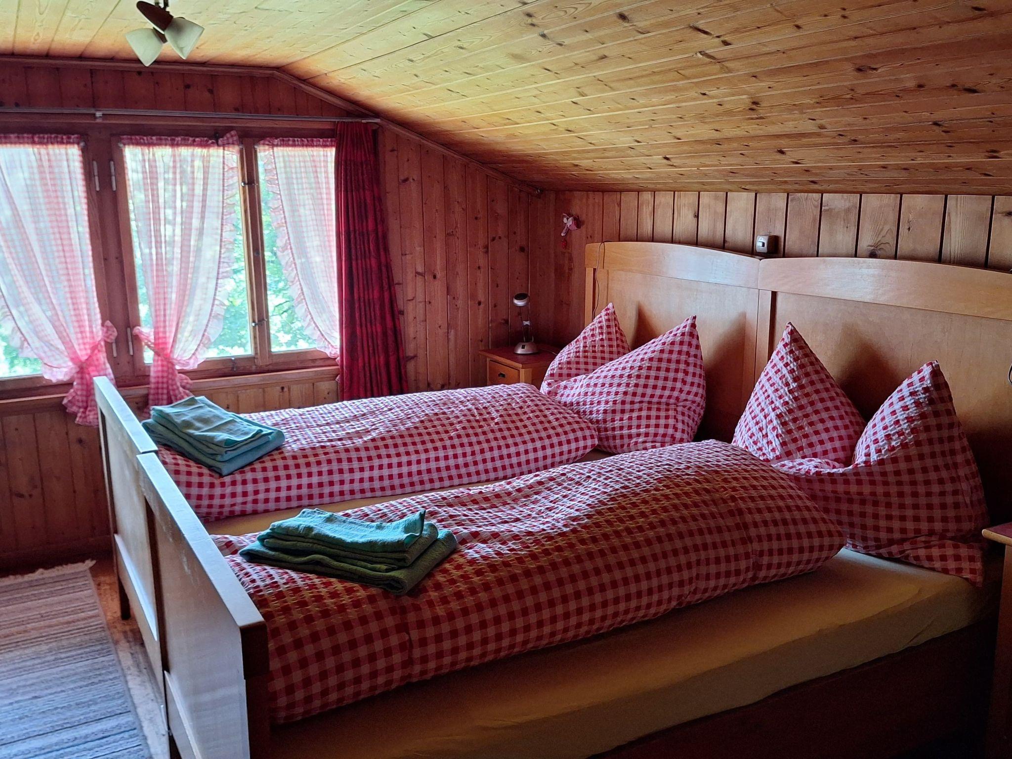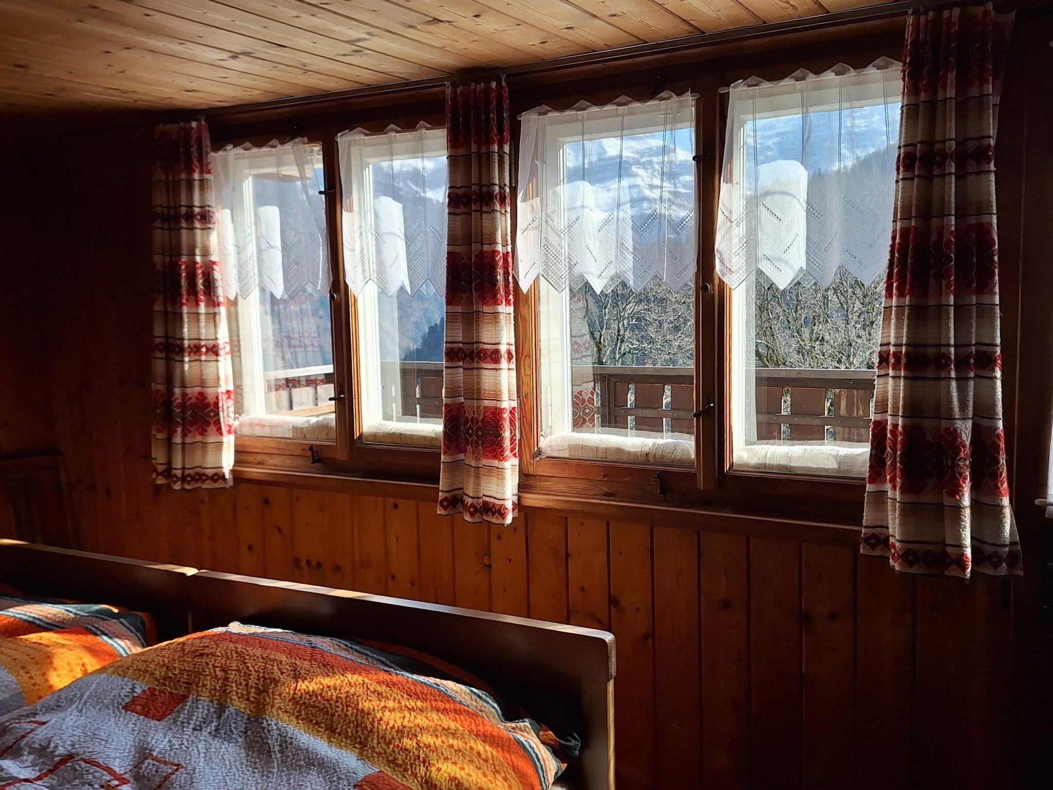 The holiday flat in Braunwald is situated outside the village in a quiet location with a view of the beautiful mountains. The house is detached and the distance to the next house is a good 100 metres. The flat offers space for up to 7 people and more and is located in a former farmhouse. The flat has four bedrooms and a small shower and WC. It has a charming parlour with a beautiful terrace, which invites you to linger. The kitchen is fully equipped. (cooker with oven, dishwasher, fridge with freezer compartment, kettle and capsule coffee machine). The flat is heated by a tiled stove. A washing machine and tumble dryer are available for shared use.