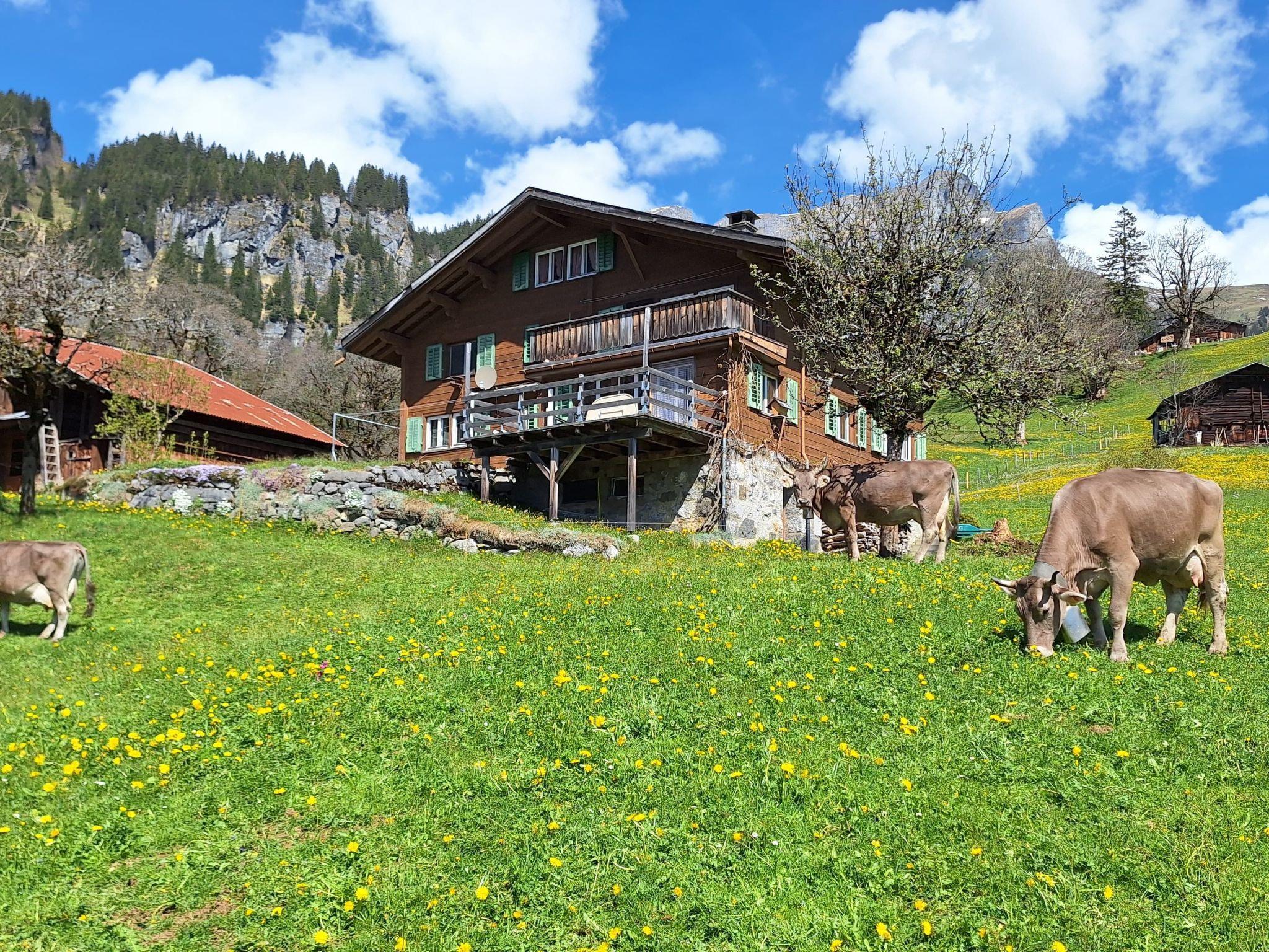 The flat is just 200 metres from our farm. In spring and autumn our cows graze with bells on the meadows, in summer they are on our alp.