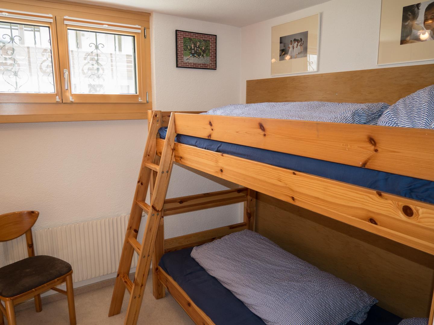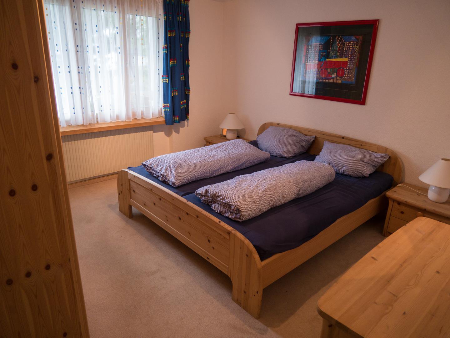 1 Schlafzimmer (14 qm) mit Doppelbett und großem Kleiderschrank, 1 kleines Schlafzimmer (7.5 qm) mit Etagenbett und Einbauschrank. Bettwäsche (die Betten sind bei Anreise bezogen) Wohnzimmer: