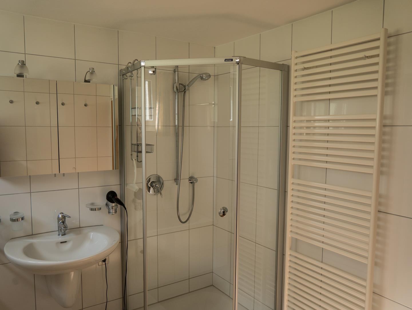 Bad mit Badewanne, separater Dusche (Glaskabine) und WC sowie Haartrockner. Badezimmerwäsche (1 großes Duschtuch und 1 Handtuch je Gast) Weitere Hinweise: