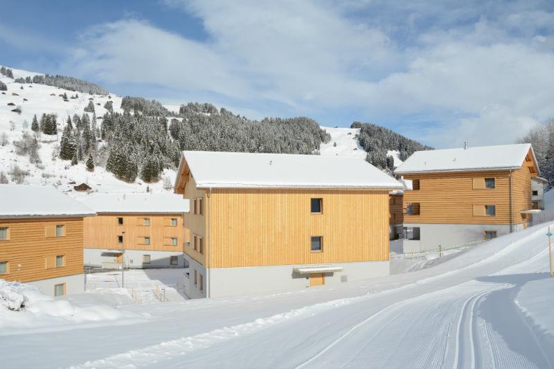The Holiday Resort Pradas in Brigels (1280 m above sea level. M.) includes 16 cottages with 83 apartments from 1½ to 4½-room and a main building with a reception desk, an indoor swimming pool with whirlpool and children's wading pool (400m2), a sauna area (135m2), a Kids World, a shop and an Intersport sports shop. The architectural style blends architecturally with its surroundings of the Grisons mountain village Brigels. Thanks to ecological construction in Minergie standard, the resort Pradas guarantees an economical energy balance and a high level of comfort (comfort, air quality).