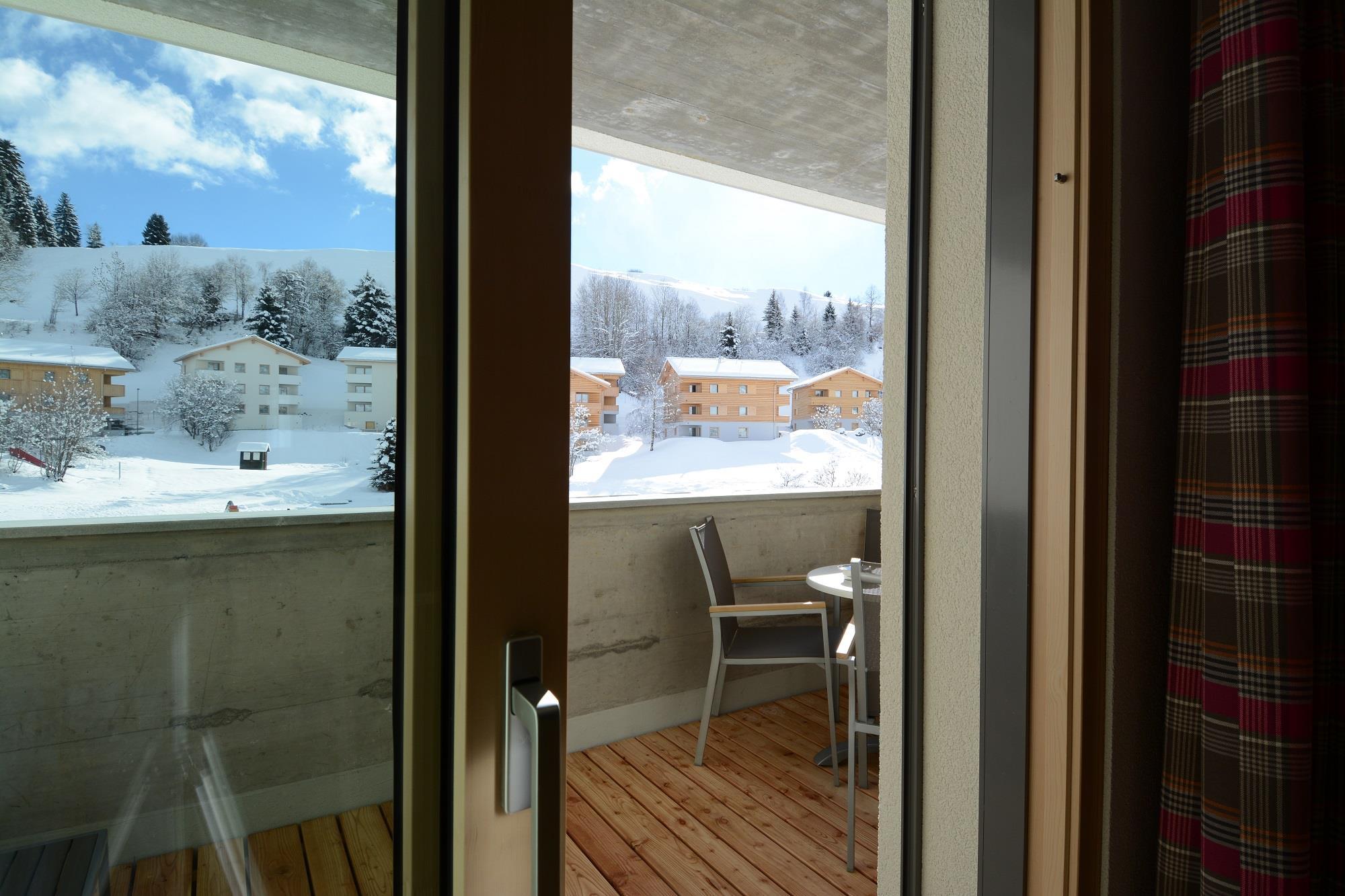 The contemporary designed apartments at the resort with alps Pradas send Interior sashes have a great view of the impressive mountains of the Brigelser horns. All have a balcony or patio.