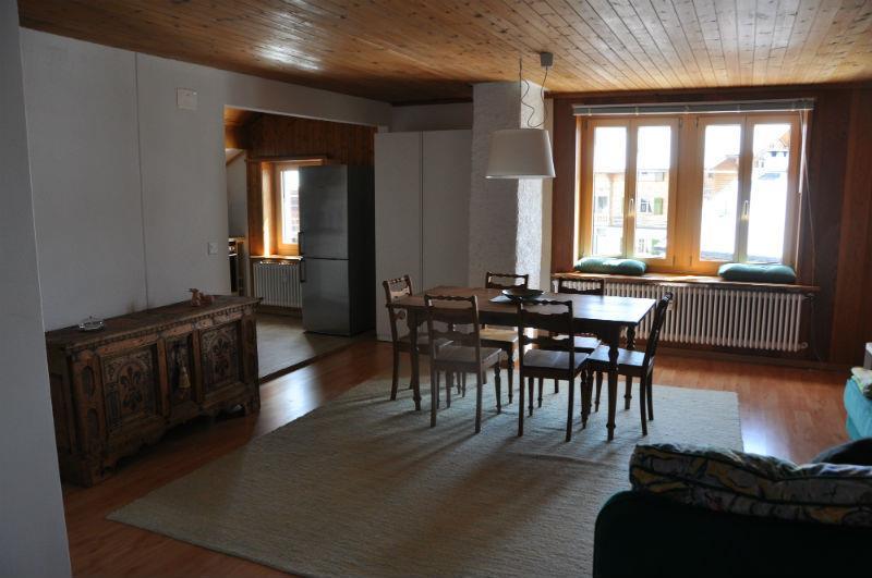 Die Busstation befindet sich gegenüber vom Haus. Dennoch ist die Wohnung sehr ruhig. Zum Haus gehört eine Remise (Skier, Velos ect. können dort verstaut werden) und ein Garten.