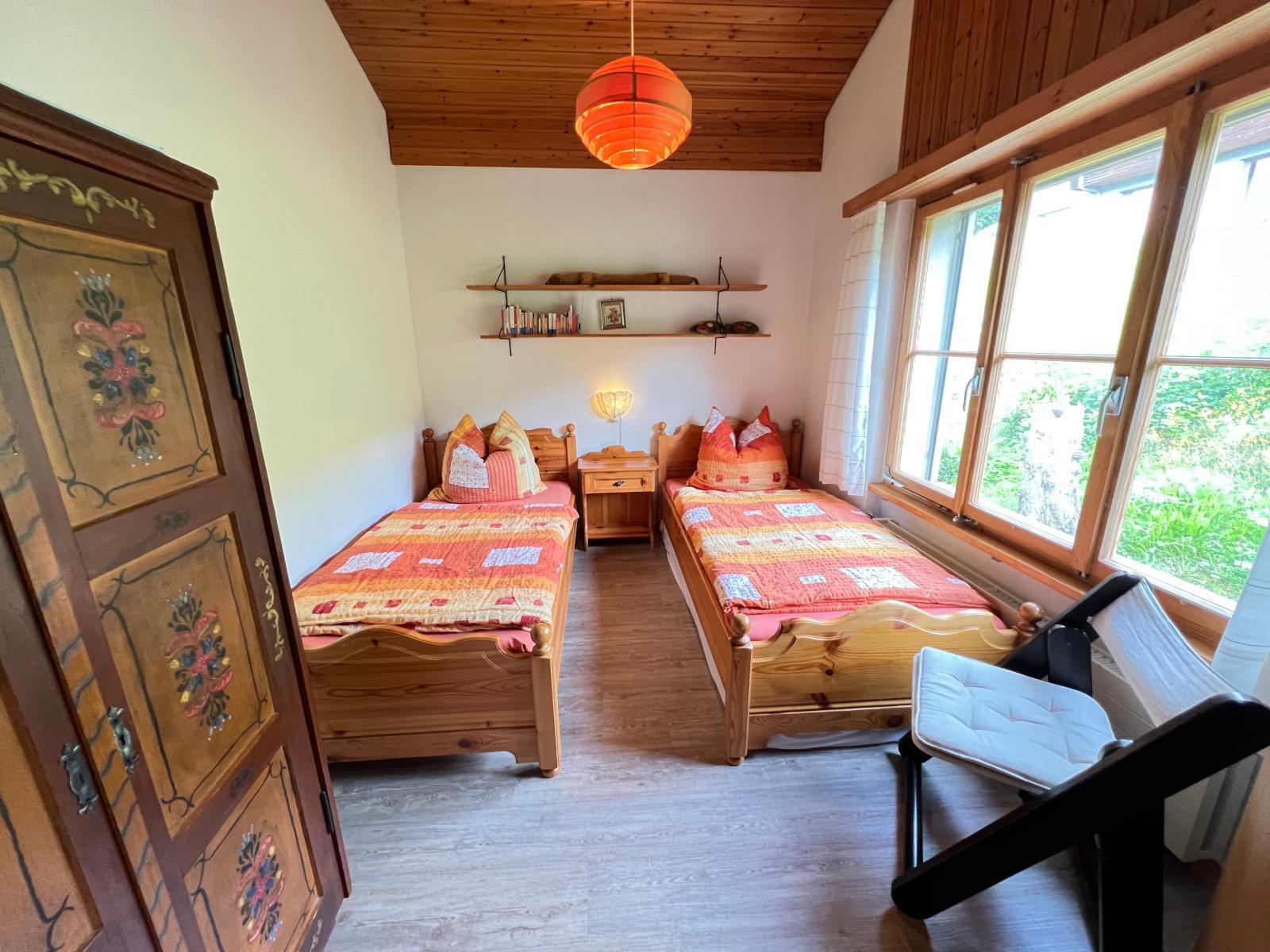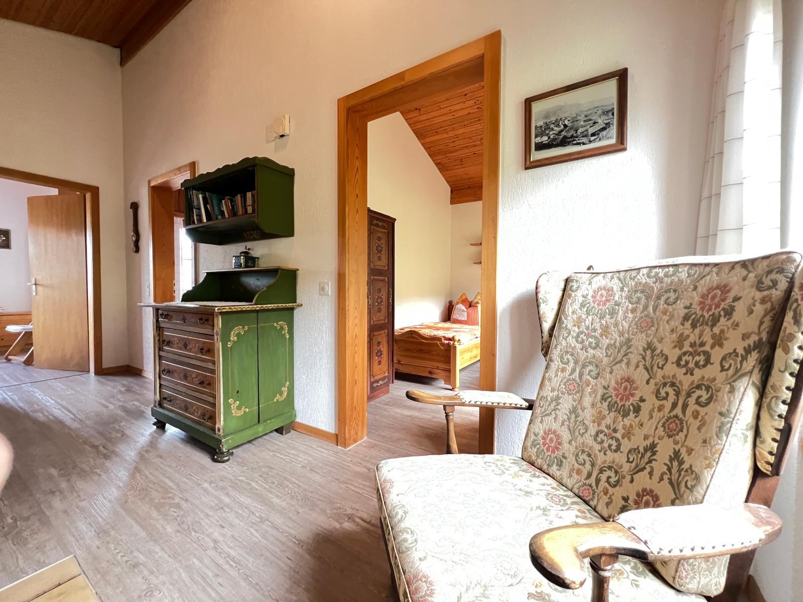 1 Schlafzimmer mit 2 Einzelbetten, Im 1. Obergeschoss 2 Doppelschlafzimmer davon eins mit zusätzlichem Einzelbett. Babybett 0-3 J. CHF 25.- (bitte informieren Sie die Wohnungsbetreuerin vor Ihrer Anreise, sofern Sie ein Babybett wünschen).Wohnzimmer: