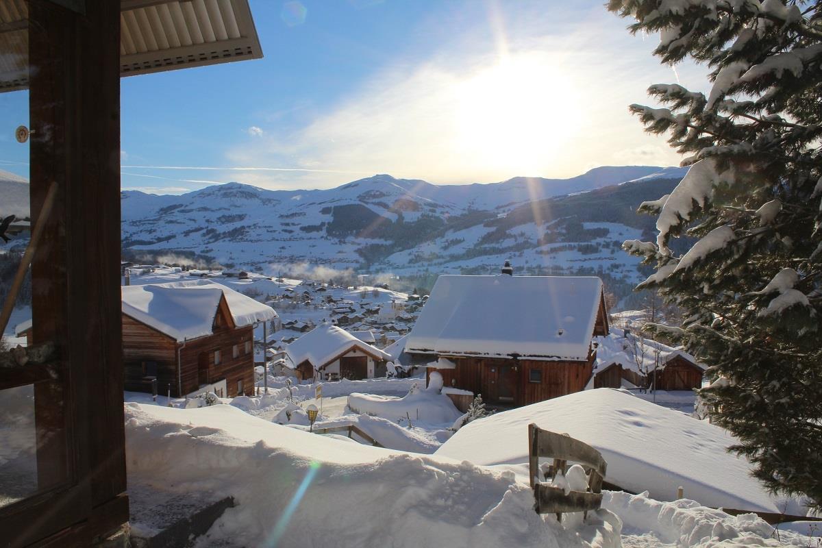 Ruhig gelegenes Haus mit Balkon, Terrasse, wunderschöner Aussicht über das Dorf und auf die gegenüberliegenden Berghänge. Zwei überdachte Parkplätze sind beim Haus vorhanden.