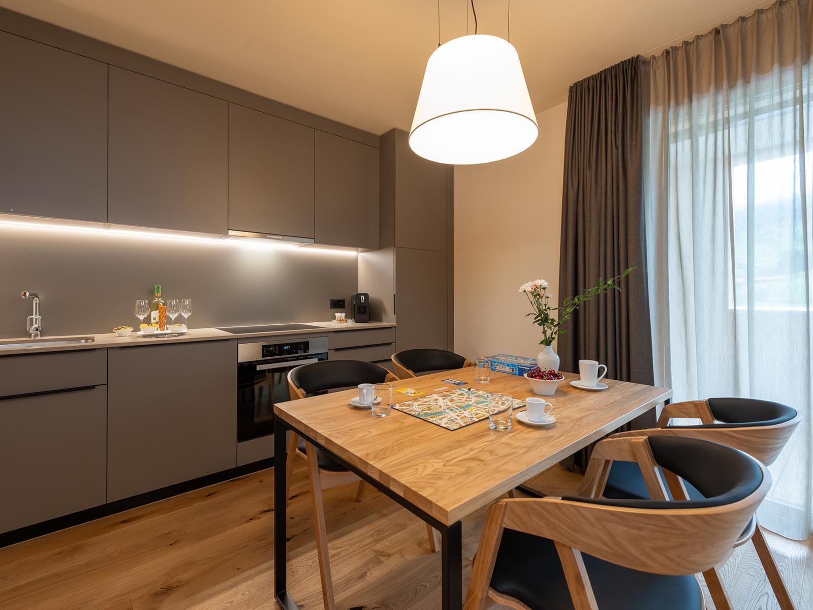 The contemporary designed apartments at the resort with alps Pradas send Interior sashes have a great view of the impressive mountains of the Brigelser horns. All have a balcony or patio.