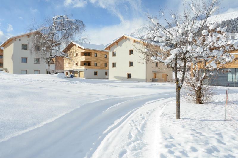 The Holiday Resort Pradas in Brigels (1280 m above sea level. M.) includes 16 cottages with 83 apartments from 1½ to 4½-room and a main building with a reception desk, an indoor swimming pool with whirlpool and children's wading pool (400m2), a sauna area (135m2), a Kids World, a shop and an Intersport sports shop. The architectural style blends architecturally with its surroundings of the Grisons mountain village Brigels. Thanks to ecological construction in Minergie standard, the resort Pradas guarantees an economical energy balance and a high level of comfort (comfort, air quality).
