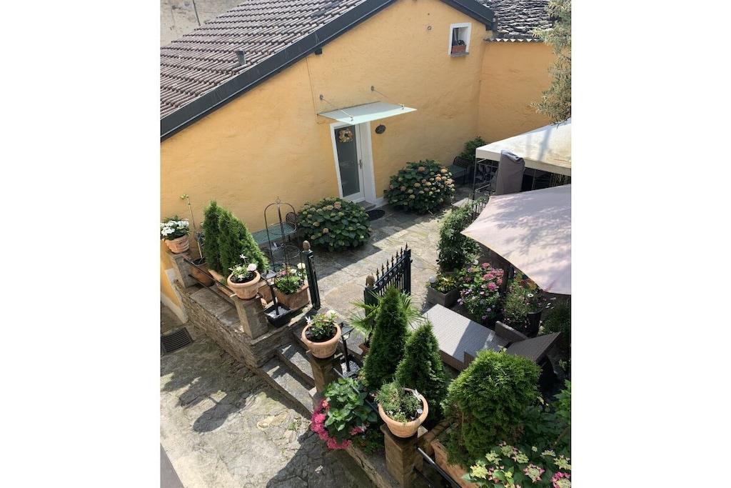 This romantic and very popular holiday home is located in the old village center, the so-called Nucleo, of Brione sopra Minusio, a UNESCO World Heritage Site. The village is situated on a south-facing slope and is therefore very sunny! It offers every comfort and is tastefully furnished with attention to detail. The rustico is fully equipped, from the kitchen with dishes, glasses, and kitchen towels to the bathroom with towels, a hairdryer, etc.