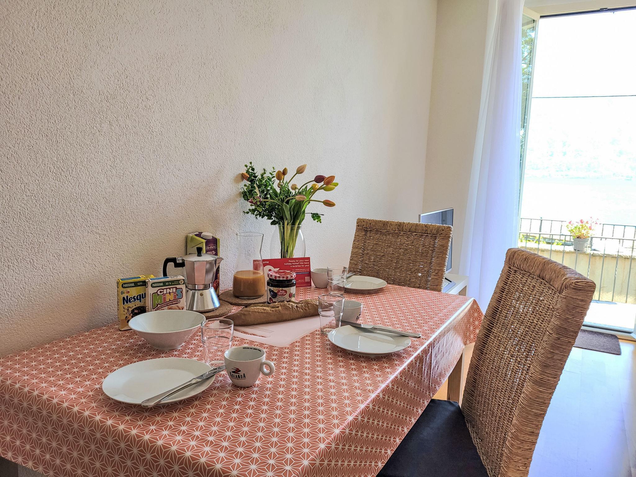 "Casa Stella App. 2", 2-room apartment 50 m2, on the ground floor, south-east facing position. Object suitable for 2 adults + 1 child. Spacious and bright, renovated in 2021, beautiful and modern furnishings: open living/dining room with 1 sofabed (140 cm, length 190 cm), dining table, cable TV and international TV channels (flat screen), radio. Exit to the patio, south-east facing position. 1 double bedroom with 1 double bed (160 cm, length 200 cm). Exit to the patio. Open kitchen (oven, dishwasher, 4 ceramic glass hob hotplates, toaster, kettle, electric coffee machine, Capsules for coffee machine (Tassimo) extra). Shower/WC. Parquet floors. Terrace partly roofed, south-east facing position. Terrace furniture. Beautiful panoramic view of the lake, the mountains and the countryside. Facilities: hair dryer. Internet (WiFi, free). Parking space n 2 at the house. Please note: non-smokers only. NL-00003318