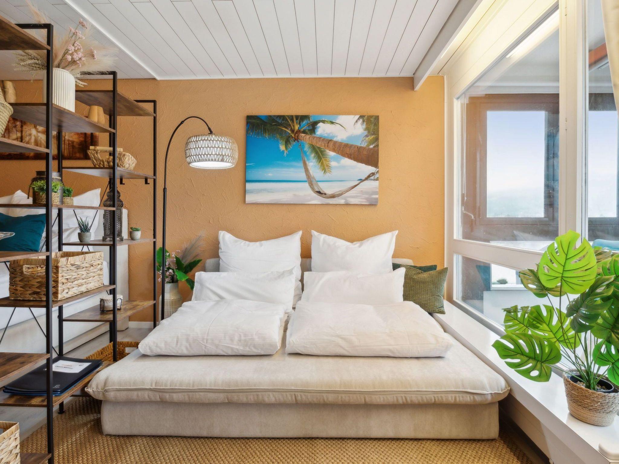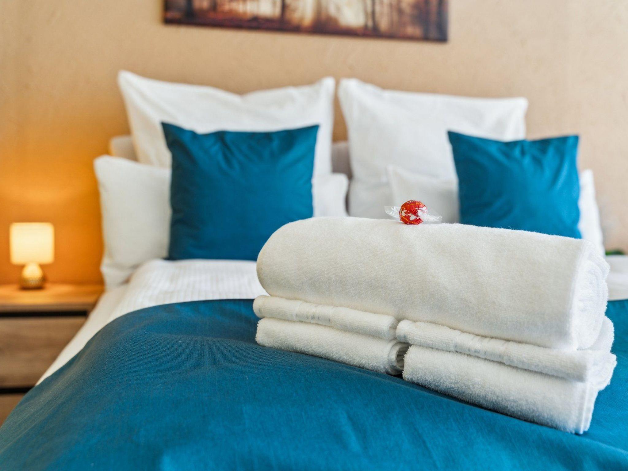 Inside, you will find a luxurious ambience that leaves nothing to be desired. Look forward to peaceful nights in the queen-size box-spring bed (160 x 200 cm) with hotel-quality bedding. Entertainment is provided by a 65'' TV with Smart TV, including 190+ TV channels and Netflix, perfect for cosy home cinema evenings. Free 500 Mbit WLAN promises fast surfing. The facilities also include a fully functional kitchen with a NESPRESSO coffee machine and a welcome set, as well as a modern bathroom with a relaxing bathtub.
